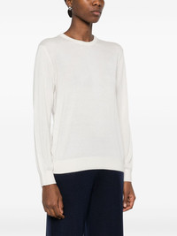 fine-knit sweater Highlights - Ecru - Crew neck - Long sleeves - Ribbed cuffs and hem Imported Composition Silk 55%, Cashmere 45% SIZE & FIT Model measurements Height 5 ft 10 in(1.78 m) Bust/Chest 31.49 in(80 cm) Hips 37 in(94 cm) Waist 23.62 in(60 cm) FittingInformation Designed for a relaxed fit, this piece allows for comfort and movement when worn Made with a lightweight knit, this piece offers some stretch