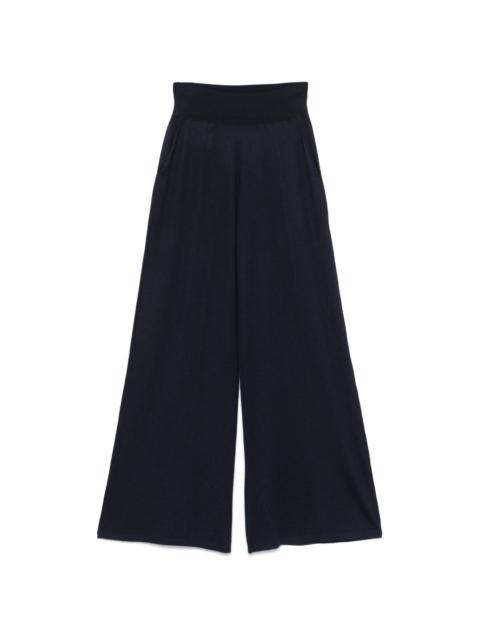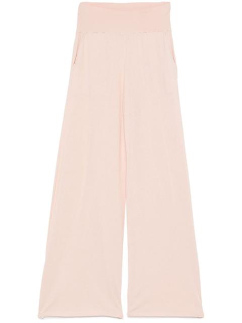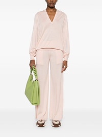 knitted trousers Highlights - Light pink - Elasticated waistband - Two side slash pockets Imported Composition Silk 55%, Cashmere 45% SIZE & FIT Model measurements Height 5 ft 10 in(1.77 m) Bust/Chest 34.64 in(88 cm) Hips 35.43 in(90 cm) Waist 24.8 in(63 cm) FittingInformation Designed with a wide-leg cut, these trousers allow for a close fit at the waist and offer a loose and roomy fit over the leg Made with a midweight knit, this piece offers some stretch Washing instructions Hand Wash