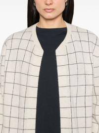 windowpane-pattern cardigan Highlights - Ecru - Ribbed band collar - Long sleeves - Ribbed cuffs and hem Imported Composition Cashmere 100% SIZE & FIT Model measurements Height 5 ft 11 in(1.8 m) Bust/Chest 33.07 in(84 cm) Hips 37.4 in(95 cm) Waist 25.19 in(64 cm) FittingInformation Designed to be unstructured, offering a loose fit throughout The ribbed hem offers a close, comfortable fit Made with a midweight knit, this piece offers some stretch