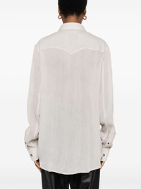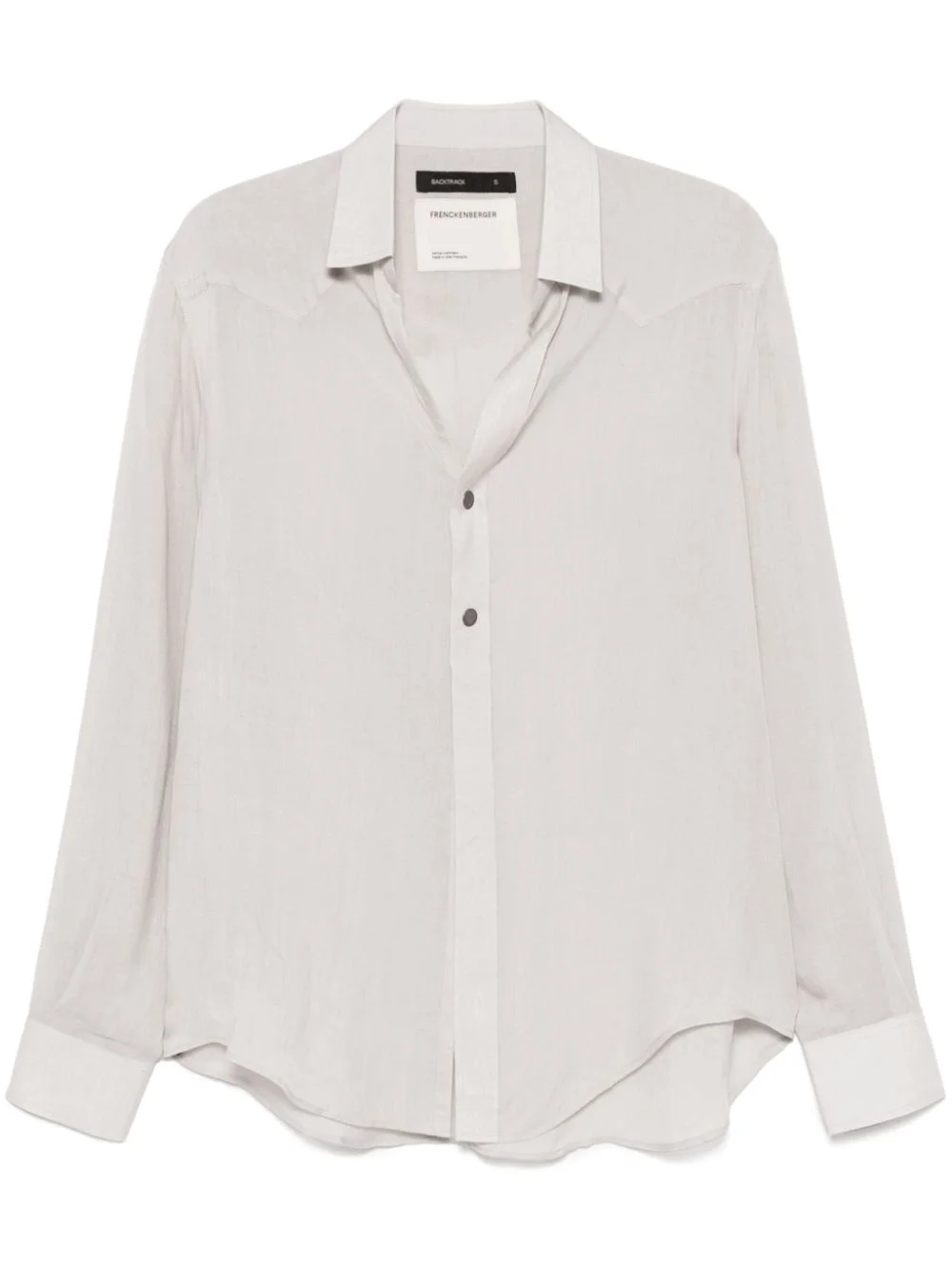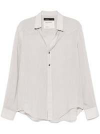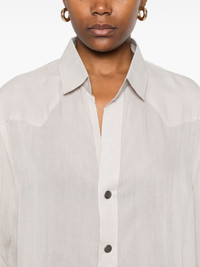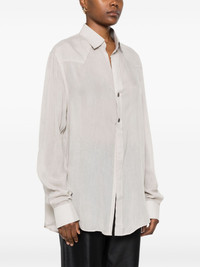 wool shirt Highlights - Light grey - Wool - Interlock twill weave - Semi-sheer construction - Panelled design - Front press-stud fastening - Classic collar - Drop shoulder - Long sleeves - Press-stud fastening cuffs - Curved hem Imported Composition Wool 100% SIZE & FIT Model measurements Height 5 ft 11 in(1.8 m) Bust/Chest 31.49 in(80 cm) Hips 36.61 in(93 cm) Waist 24.4 in(62 cm) FittingInformation Designed for an oversized fit, offering additional room throughout Made from a lightweight non-stretch fabric