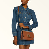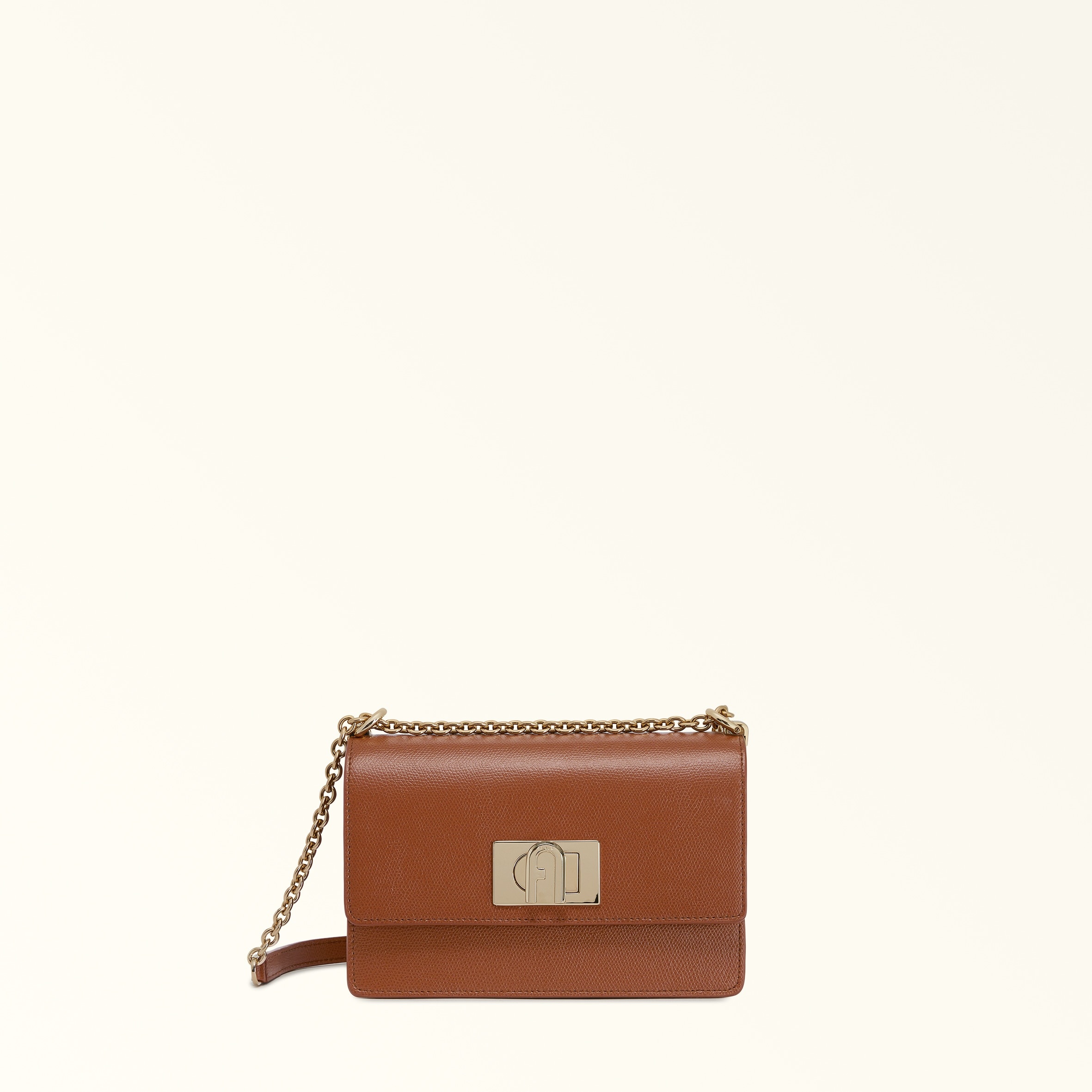 Crafted from luxurious printed leather with a grained finish, this elegant Furla 1927 mini bag is perfectly sized to hold your small essentials and personal effects. Wear it on the shoulder or crossbody, either way you're sure to turn heads with this stylish accessory. - Open inside pocket for credit cards and documents - Open outer pocket on the back - Fixed chain shoulder strap with adjustable matching leather sections - Twist closure with Arch logo Interior Details 1 Flat Open Pocket Exterior Details 1 Open Pocket On The Back material Textured Leather Strap information Fixed/Adjustable Chain Strap With Leather Parts Closure Arch Turnlock Closure edge Tone-on-tone Seams Tone-on-tone product code BAFKACO_ARE000_1007_03B00 Lining 100% Polyester composition 100% Leather Plating Gold