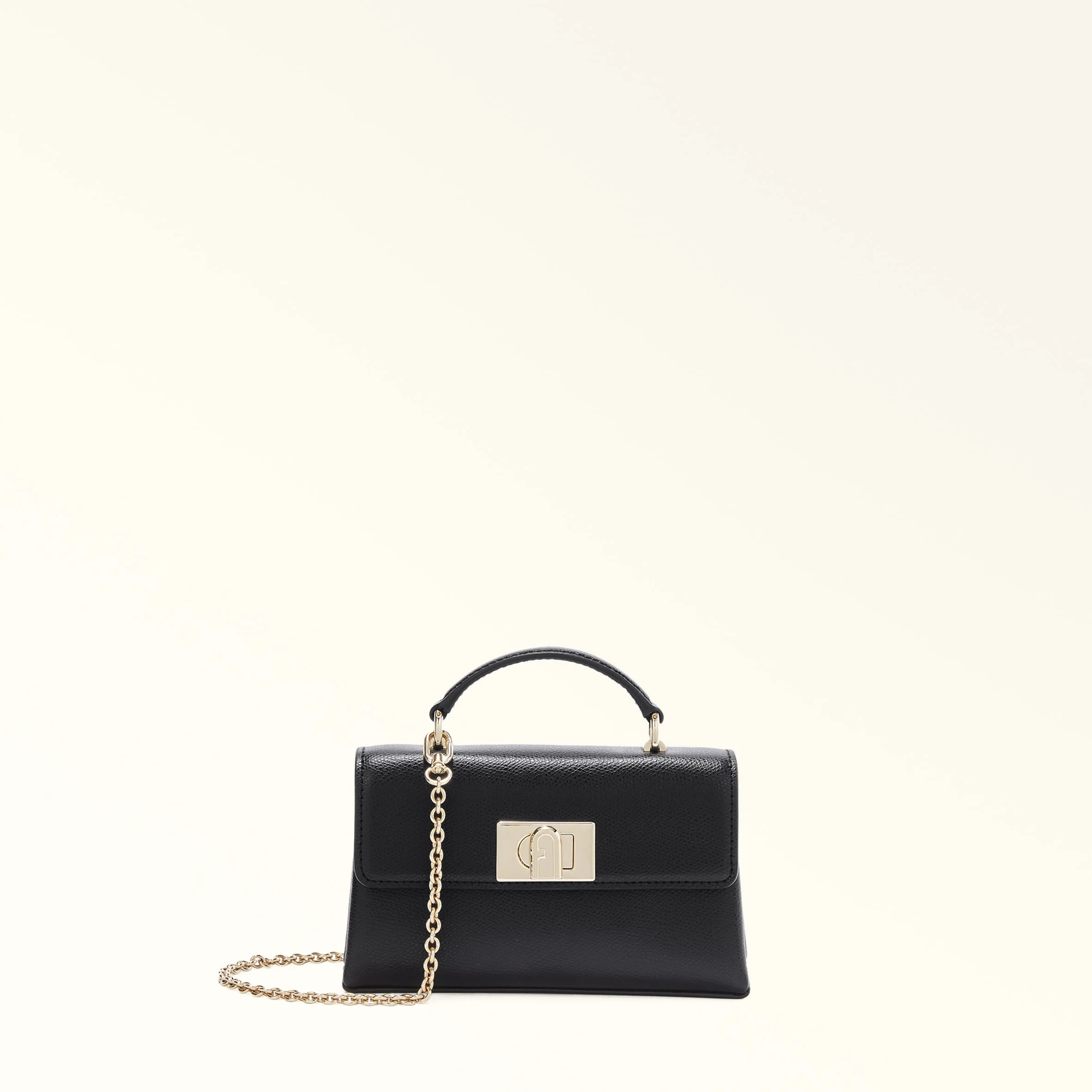 Crafted from luxurious printed leather with a grained texture, this super-cute Furla 1927 mini bag is the epitome of a good thing that comes in a small package. The timeless and elegant piece comes with a top handle and a slim detachable chain strap, allowing for versatile wear. - Three inner credit card slots - Twist closure with Arch logo Details Interior Details: 3 Cc Slots Exterior Details: Top Handle Material: Textured Leather Strap information: Removable/Non Adjustable Chain Strap Closure: 1927 Arch Turn-Lock Product Code: WE00423ARE0001007O6000 Internal Composition: 80% Polyester 20% Leather External Composition: 100% Leather Plating: Gold Dimensions in INCH 7,28 x 4,13 x 1,77 (w x h x d)
