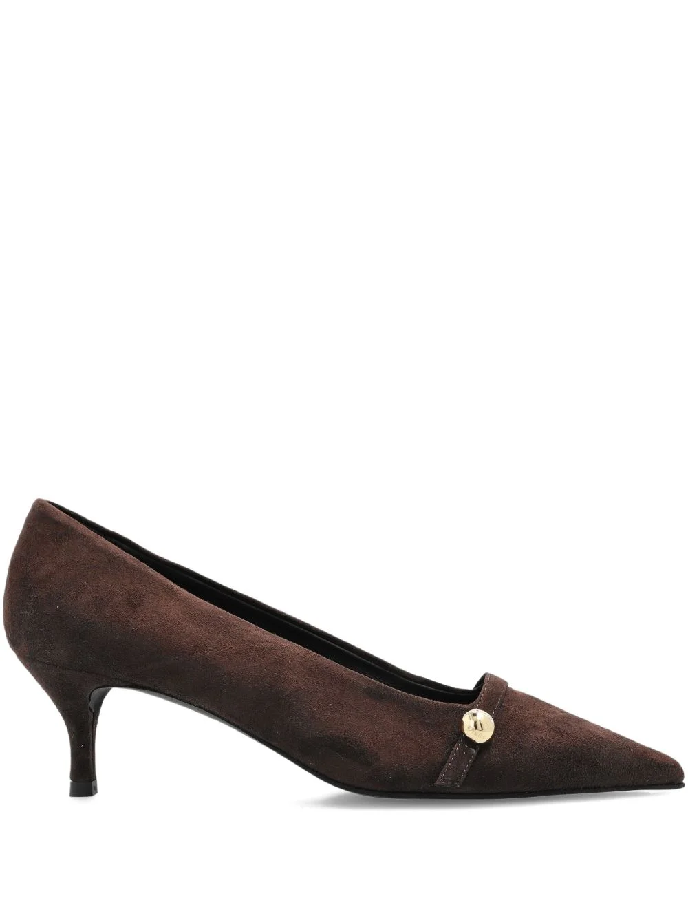 60mm pointed-toe heeled pumps Highlights - Dark brown - Suede upper - Pointed toe - Gold-tone embellishment Made in Italy Composition Sole: Rubber 100% Outer: Goat Skin 100% Lining: Calf Leather 100% SIZE & FIT Measurement HEEL 2.36 in(6 cm)