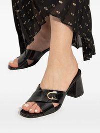 85mm leather sandals Highlights - Black - High block heel - Square open toe - Gold-tone hardware Imported Composition Outer: Calf Leather 100% Lining: Calf Leather 100%, Fabric 100% Sole: Rubber 100% SIZE & FIT Measurement HEEL 3.34 in(8.5 cm)