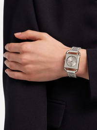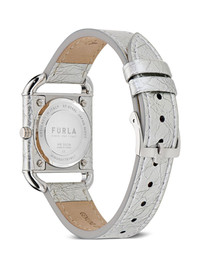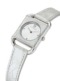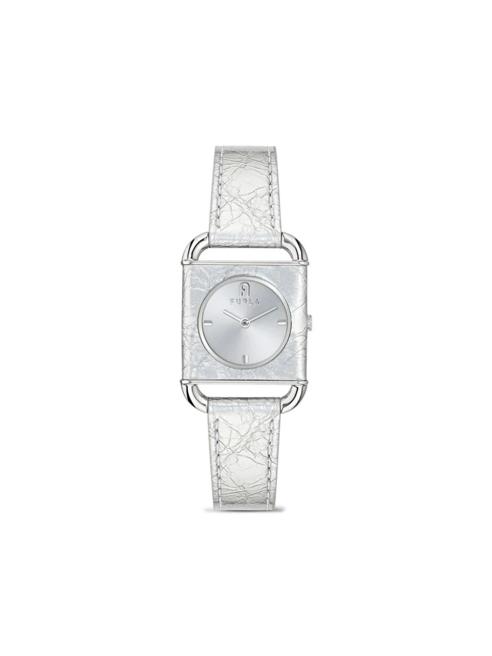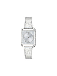 Arco Square 28mm Highlights - Silver-tone - Stainless steel case - Leather strap - Cracked effect - Buckle fastening - Geometric dial - Baton hands - Round face Imported