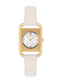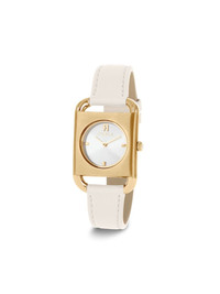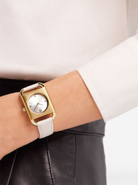 Arco Square 28mm Highlights - White - Gold-tone - Stainless steel case - Leather strap - Square face - Quartz movement - Index dial - Stick hands - Logo-engraved gold-tone hardware - Buckle-strap fastening Imported