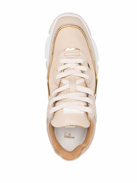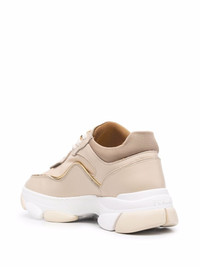 chunky lace-up sneakers Highlights - Beige/bright-white - Leather-blend - Front lace-up fastening - Round toe - Chunky rubber sole - Panelled design Imported Composition Leather 100% SIZE & FIT Measurement HEEL 1.77 in(4.5 cm) Sole height 0.78 in(2 cm)