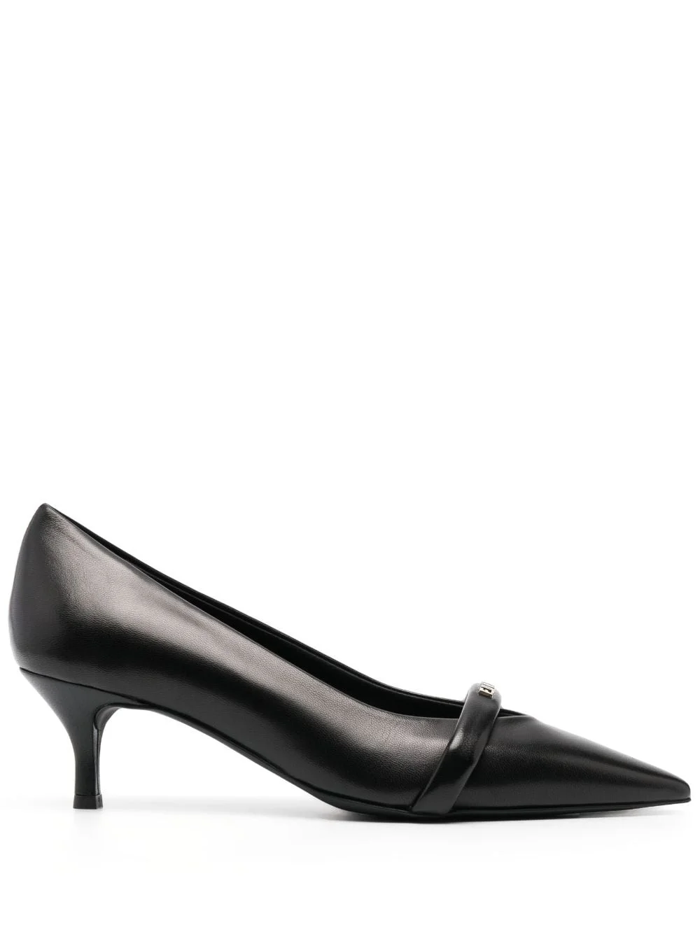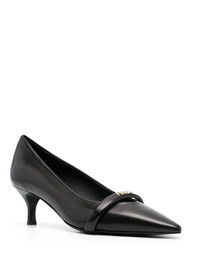 Core 60mm logo-lettering leather pumps Highlights - Black - Calf leather - Gold-tone logo lettering - Pointed toe - Branded insole - 60mm mid heel Made in Italy Composition Leather 100% SIZE & FIT Measurement HEEL 2.36 in(6 cm)