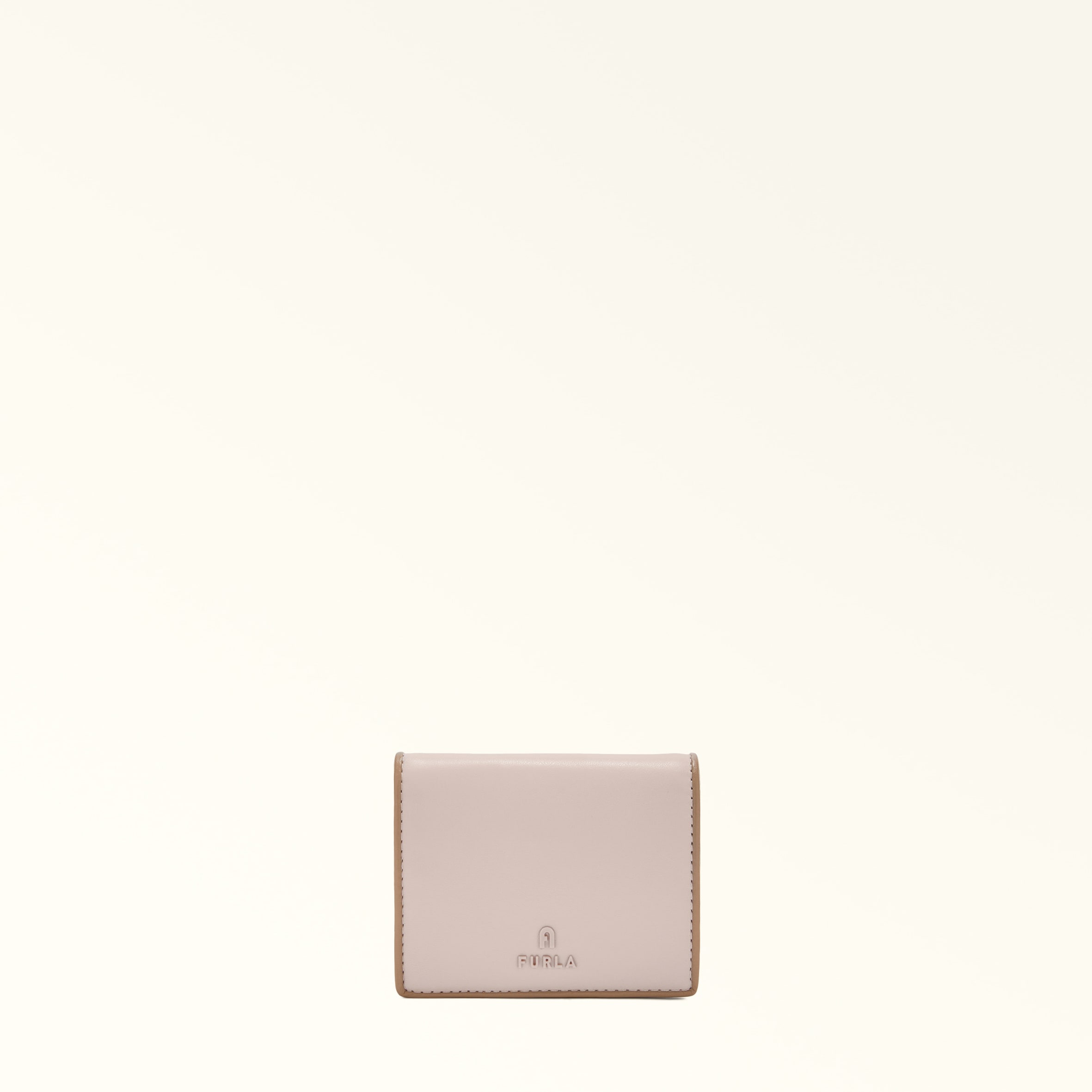 Featuring rounded corners and a bi-fold design, the Furla Camelia wallet is made of smooth soft leather with a fine contrasting trim. Slim and compact, it can be slipped into any bag, and its variety of inside pockets and compartments keep your cards and cash flawlessly organised. - Inner compartment for banknotes - Five inner credit card slots - Inner coin pocket with flap and press-stud closure - Flap and press-stud closure - Mini Furla and Arch logo punched on the front Details Interior Details: 5 Cc Slots/1 Large Compartments/Pockets With Snap Button For Coins Material: Soft Calf Leather + Piping Hardware: Arch+Furla Lettering Product Code: WP00304BX091710073161S Internal Composition: 100% Polyester External Composition: 100% Leather Plating: Gold Dimensions in INCH 4,33 x 3,54 x 0,98 (w x h x d)