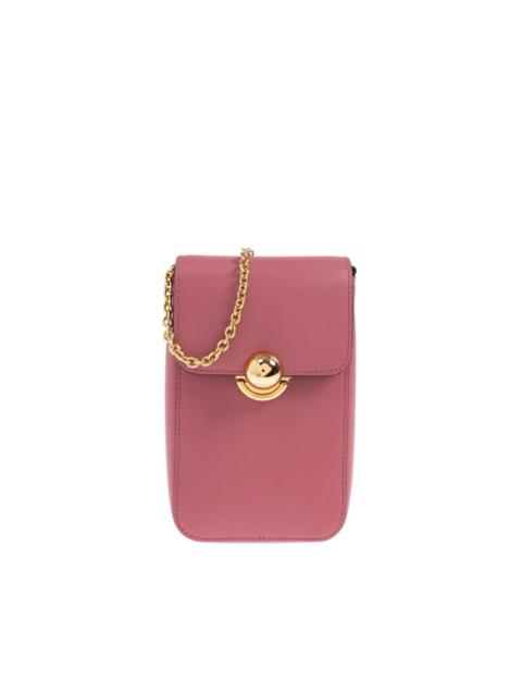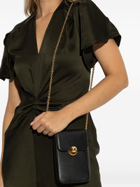 chain-strap flap tote bag Highlights - Black - Leather construction - Gold-tone spherical clasp - Chain shoulder strap - Flap closure - Rectangular shape Imported Composition Outer: Calf Leather 100% SIZE & FIT Measurement HEIGHT 7.08 in(18 cm) WIDTH 4.33 in(11 cm)