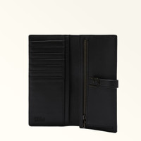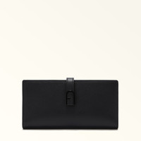 This Furla Flow continental wallet is styled in fine leather with a soft hand. A joy to touch, the super-slim bi-fold design is practical and convenient, in that it can easily fit into a bag or backpack, or even an elegant clutch. While the inside is carefully organised to hold cards, documents and banknotes, the outside boasts a press-stud closure embellished with an iconic Arch logo. - Seven inner credit card and ID slots - Inner compartment for banknotes - Three flat pockets - Zipped inner pocket Details Interior Details: 7 Cc Slots 1 Banknotes Pocket 3 Flat Pockets 1 Zipped Pocket Material: Claris Lux Calf Leather Closure: Snap Button Closure Hardware: Furla Arch Gasket Product Code: WP00402BX20451020O6000 Internal Composition: 100% Viscose External Composition: 100% Leather Plating: Galvanised In The Same Colour Dimensions in INCH 7,28 x 3,74 x 0,79 (w x h x d)