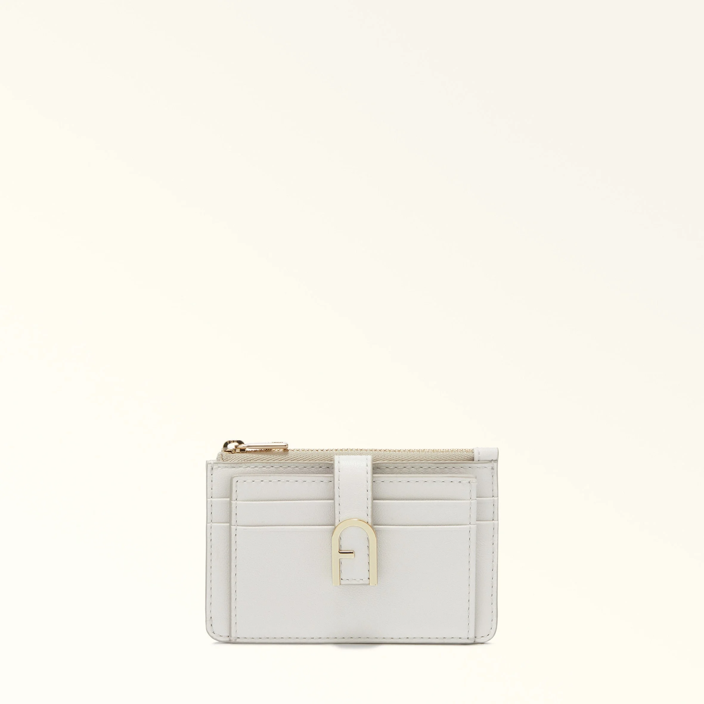Crafted in fine leather, this Furla Flow card case features a flat and functional shape that is slim enough to be slipped into any bag. - Two credit card slots with flap and press-stud closure with Arch logo - Two credit card and ID slots on the front - One credit card and ID slot on the back - Ideal for holding badges and passes - Zip closure Details Exterior Details: 2 Cc Slots On The Front 1 Cc Slot On The Back Foldable Badge Holder W 2 Cc Slots With Snap Closure Material: Claris Lux Calf Leather Closure: Zipper Hardware: Furla Arch Gasket Snap Button Metal Zip Puller Product Code: WP00403BX204510071704S Internal Composition: 100% Viscose External Composition: 100% Leather Plating: Gold Dimensions in INCH 4,72 x 2,95 (w x h)