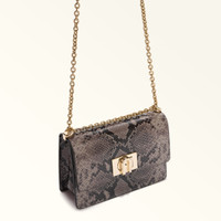Offering the perfect amount of storage for your smaller items and belongings, the mini Furla 1927 bag can be worn on your shoulder or as a crossbody. Made of leather with an elegant python print, it is an ideal companion for casual moments and off-duty plans. - Open inside pocket - Open outer back pocket - Adjustable chain strap with leather sections - Twist closure with Arch logo Details Interior Details: 1 Flat Open Pocket Exterior Details: 1 Open Pocket On The Back Material: Capra Leather with Print Aspide Lux Strap information: Fixed/Adjustable Chain Strap With Leather Parts Strap Length Max: 42.52 in Strap Length Min: 42.52 in Closure: Arch Turnlock Closure Product Code: BAFKACOBX417810074285S Plating: Gold Weight: 0.64 kg Dimensions in INCH 7,68 x 4,72 x 2,76 (w x h x d)