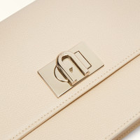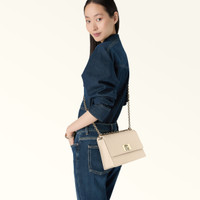 Crafted from luxurious leather with a natural grained finish, this elegant Furla 1927 crossbody is perfectly sized to hold your small essentials and personal effects. Wear it on the shoulder or crossbody, either way you're sure to turn heads with this stylish and compact accessory. - Inside zip pocket - Open outer pocket on the back - Chain shoulder strap with matching leather sections - Twist closure with Arch logo Details Interior Details: 1 Zipped Pocket Exterior Details: 1 Open Pocket On The Back Material: Textured Leather Strap information: Fixed/Adjustable Chain Strap With Leather Parts Strap Length Max: 51.97 in Closure: Arch Turnlock Closure Edges: Tone-on-tone Seams: Tone-on-tone Product Code: BAFIACOARE0001007B4L00 Internal Composition: 100% Polyester External Composition: 100% Leather Plating: Gold Dimensions in INCH 9,45 x 6,3 x 3,35 (w x h x d)