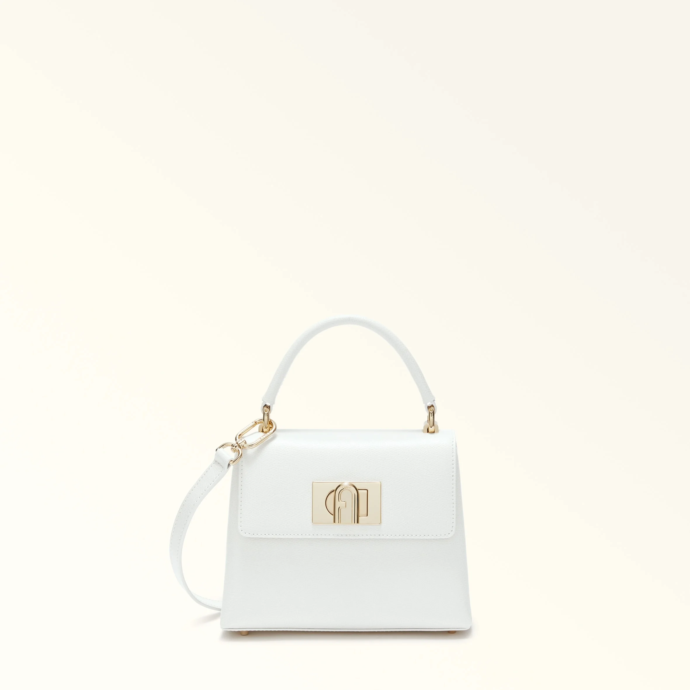 The perfect size for holding all your small belongings, this Furla 1927 is a mini top-handle bag crafted from elegant leather with a light textured finish. The distinctive twist closure with the tab and iconic Furla Arch logo will capture attention whether you carry it by hand or use the strap to wear it on the shoulder or crossbody. - Gusseted inner construction with pocket and zip - Open outside pocket on the back - Adjustable and detachable matching leather shoulder strap - Metal feet Details Interior Details: 1 Flat Open Pocket/ 1 Zipped Pocket Exterior Details: 1 Open Pocket On The Back Material: Textured Leather Strap information: Removable/adjustable leather strap Strap Length Max: 47.64 in Strap Length Min: 42.91 in Closure: Arch Turnlock Closure Hardware: Metal Feet Product Code: WB00109ARE0001007PNN00 Internal Composition: 100% Polyester External Composition: 100% Leather Plating: Gold Dimensions in INCH 8,27 x 6,3 x 3,35 (w x h x d)