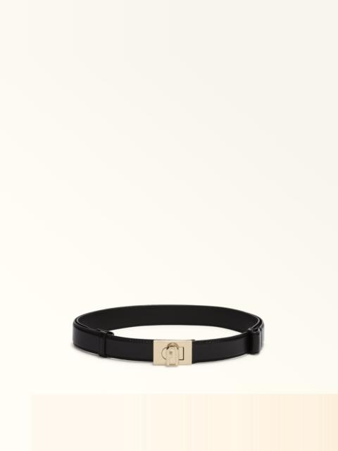 Made of fine leather with a textured finish, the adjustable Furla 1927 belt features a distinctive twist-lock buckle decorated with the iconic Arch logo. A refined accessory, it adds an elegant touch to any outfit. - Width: 3 cm Details Exterior Details: Furla Punched Logo Material: Textured Leather Belt Type: Adjustable Belt Product Code: WC00065ARE0001007O6000 Plating: Gold