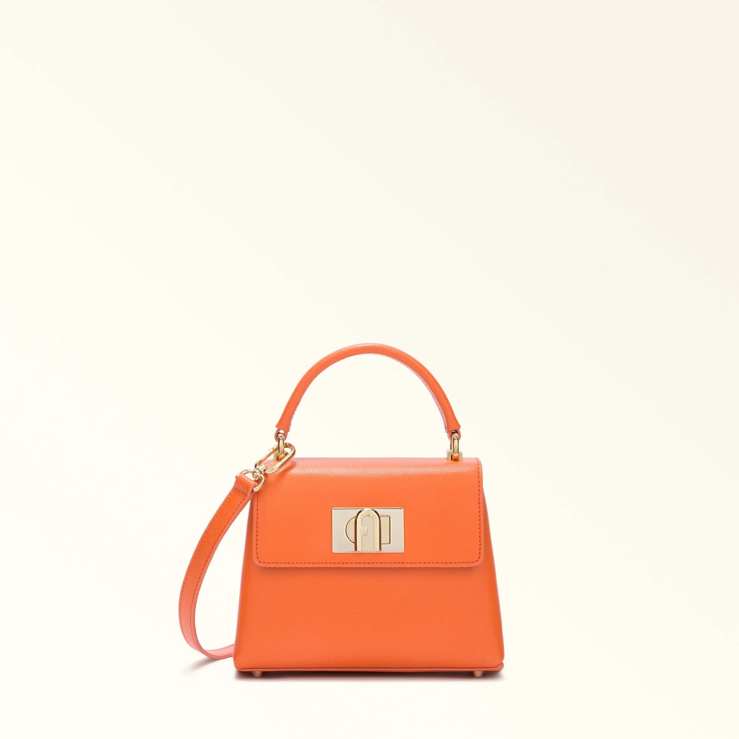 The perfect size for holding all your small belongings, this Furla 1927 is a mini top-handle bag crafted from elegant leather with a light textured finish. The distinctive twist closure with the tab and iconic Furla Arch logo will capture attention whether you carry it by hand or use the strap to wear it on the shoulder or crossbody. - Gusseted inner construction with pocket and zip - Open outside pocket on the back - Adjustable and detachable matching leather shoulder strap - Metal feet Details Interior Details: 1 Flat Open Pocket/ 1 Zipped Pocket Exterior Details: 1 Open Pocket On The Back Material: Textured Leather Strap information: Removable/adjustable leather strap Strap Length Max: 47.64 in Strap Length Min: 42.91 in Closure: Arch Turnlock Closure Hardware: Metal Feet Product Code: WB00109ARE0001007KP000 Internal Composition: 100% Polyester External Composition: 100% Leather Plating: Gold Dimensions in INCH 8,27 x 6,3 x 3,35 (w x h x d)