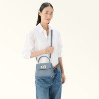 The perfect size for holding all your small belongings, this Furla 1927 is a mini top-handle bag crafted from elegant leather with a light textured finish. The distinctive twist closure with the tab and iconic Furla Arch logo will capture attention whether you carry it by hand or use the strap to wear it on the shoulder or crossbody. - Gusseted inner construction with pocket and zip - Open outside pocket on the back - Adjustable and detachable matching leather shoulder strap - Metal feet Details Interior Details: 1 Flat Open Pocket/ 1 Zipped Pocket Exterior Details: 1 Open Pocket On The Back Material: Textured Leather Strap information: Removable/adjustable leather strap Strap Length Max: 47.64 in Strap Length Min: 42.91 in Closure: Arch Turnlock Closure Hardware: Metal Feet Product Code: WB00109ARE00010072495S Internal Composition: 100% Polyester External Composition: 100% Leather Plating: Gold Dimensions in INCH 8,27 x 6,3 x 3,35 (w x h x d)