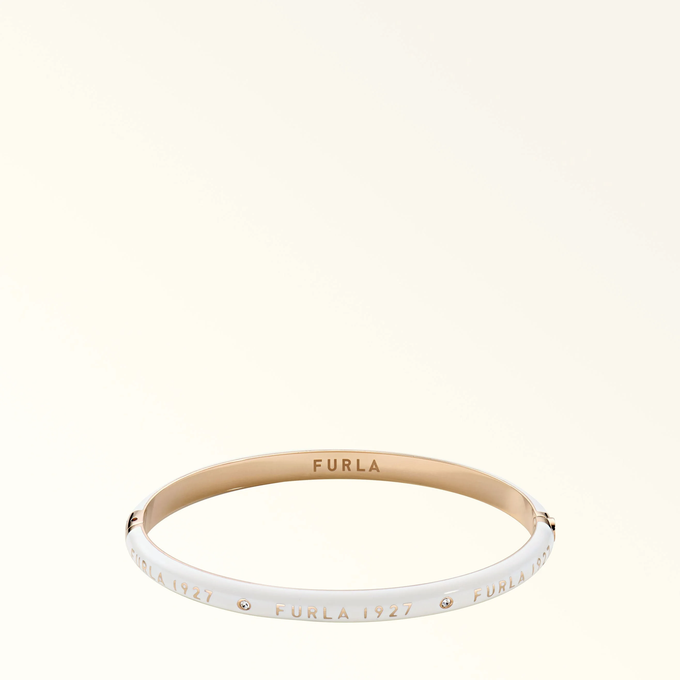 This Furla 1927 bangle is embellished with small rhinestones for a subtle shimmer, and the elegant logo lettering. Made from metal and enamelled resin, it's the perfect option for giving any look a touch of colour. Details Material: Metal + Resin Product Code: WJ00250K2200010083914S External Composition: 85% Resin 5% Glass Plating: Rose Gold