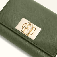 This Furla 1927 compact wallet is distinctive, being crafted from luxurious printed leather with a grained finish. Soft to the touch and elegant in appearance, it is carefully organised inside to hold banknotes, credit cards and ID. The twist closure on the outside with the iconic Arch logo is testament to the perfect balance of functionality and attention to detail that this piece embodies. - Back zipped pocket - Inner compartment for banknotes - Eight inner credit card slots - Two inner side pockets Details Interior Details: 8 Cc Slots + 2 Lateral Slots + 1 Large Compartment Exterior Details: One Zipped Pocket On The Back Material: Textured Leather Closure: 1927 Arch Turn-Lock Hardware: Metal Zip Puller Product Code: WP00225ARE0001007OLI00 Internal Composition: 100% Viscose External Composition: 100% Leather Plating: Gold Weight: 0.3 kg Dimensions in INCH 5,12 x 3,74 x 0,98 (w x h x d)