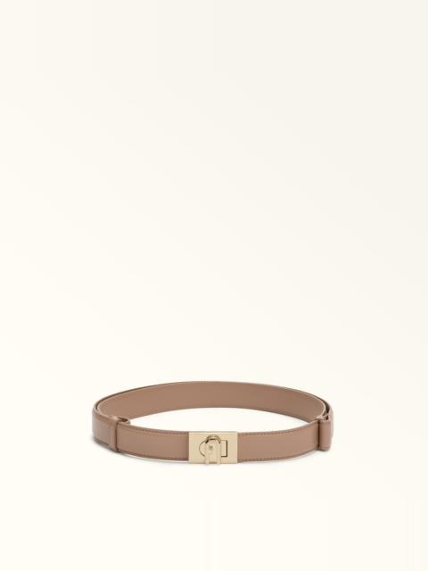 Made of fine leather with a textured finish, the adjustable Furla 1927 belt features a distinctive twist-lock buckle decorated with the iconic Arch logo. A refined accessory, it adds an elegant touch to any outfit. - Width: 3 cm Details Exterior Details: Furla Punched Logo Material: Textured Leather Belt Type: Adjustable Belt Product Code: WC00065ARE00010071257S Plating: Gold