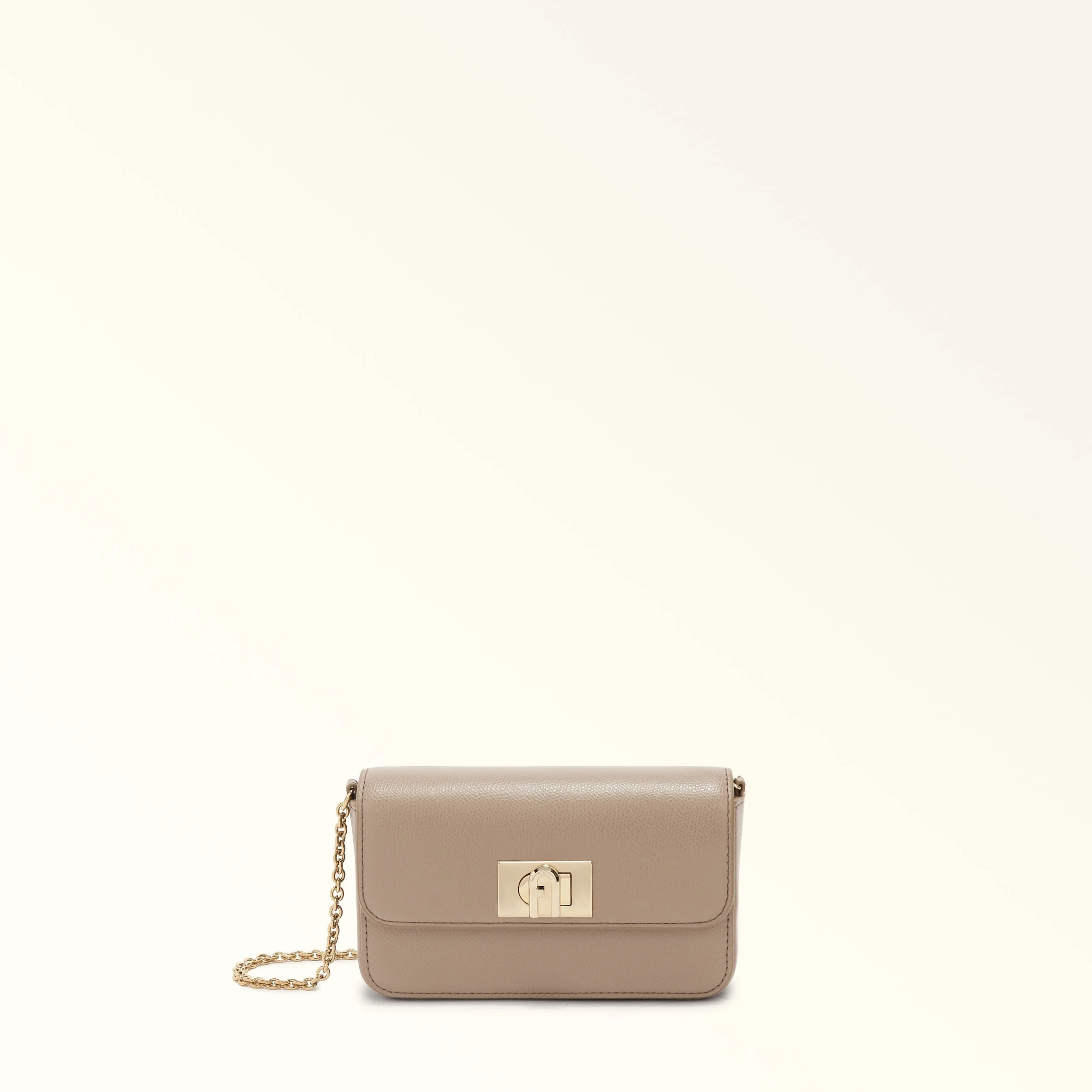 This sweet Furla 1927 style is super compact. Made of precious leather with a printed grain texture, it features a thin chain strap for added versatility – transforming the bag into a shoulder or crossbody bag. - Three inner credit card slots - Fits an iPhone 15 or iPhone 15 Max Pro - Twist closure with Arch logo Details Interior Details: 3 Cc Slots Cotton Lining Exterior Details: Furla Arch Turnlock Material: Textured Leather Strap information: Fixed/Non Adjustable Chain Strap Strap Length Max: 44.09 in Strap Length Min: 44.09 in Tech compatibility: IPhone 13, IPhone 13 Max Pro Closure: 1927 Arch Turn-Lock Product Code: WE00265ARE00010072572S Internal Composition: 80% Polyester 10% Nylon 10% Polyurethane External Composition: 100% Leather Plating: Gold Weight: 0.36 kg Dimensions in INCH 6,69 x 3,94 x 1,57 (w x h x d)