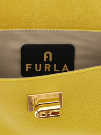 mini Furla 1927 flap tote bag Highlights - Yellow - Grained texture - Flap closure - Spin fastening - Fixed handle - Removable chain shoulder strap Imported Composition Outer: Leather 100% SIZE & FIT Measurement DEPTH 1.69 in(4.3 cm) HEIGHT 3.93 in(10 cm) WIDTH 6.49 in(16.5 cm)