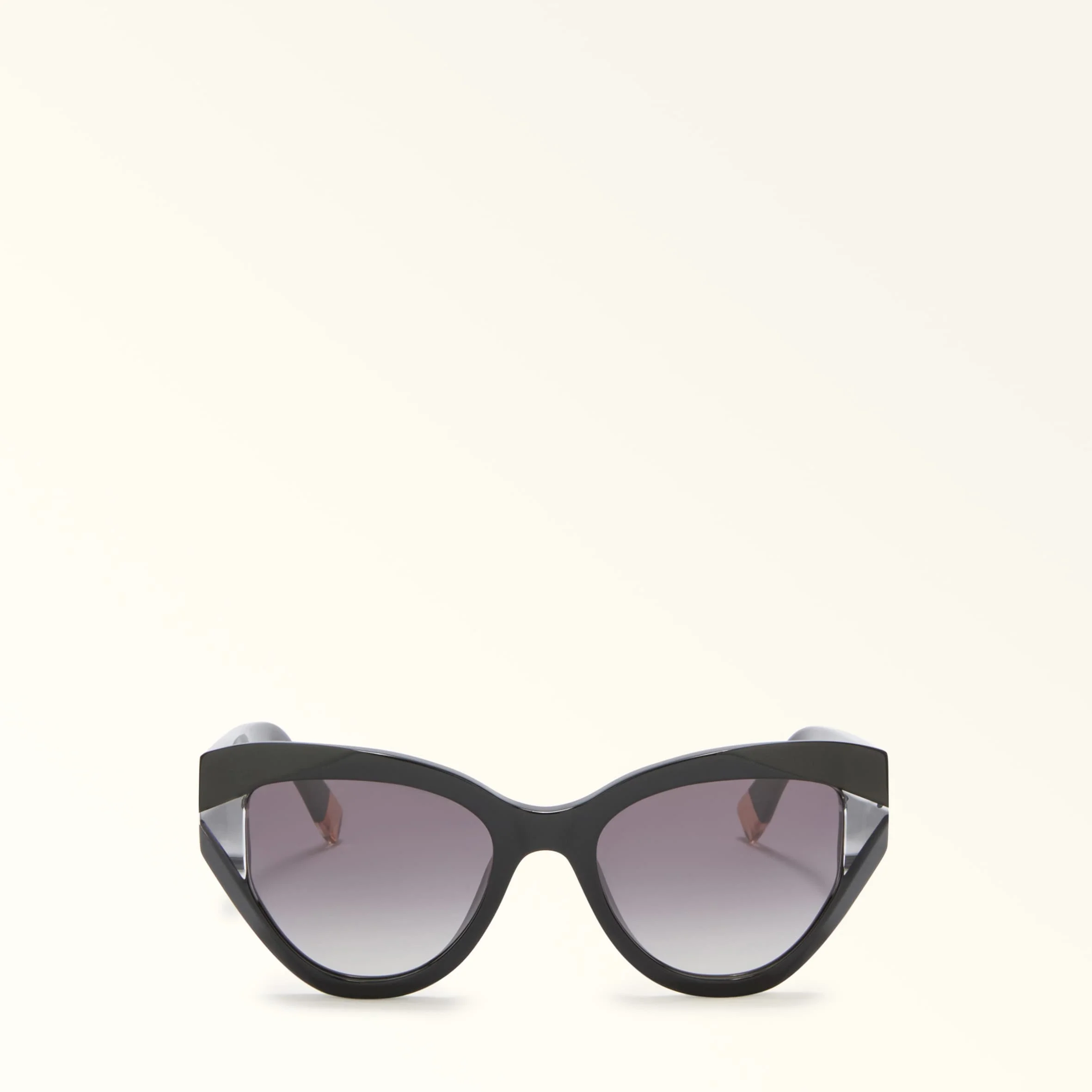 Sporting a slight cat-eye shape, the Furla SFU886 Sunglasses feature a colour-block acetate frame front. The frame accentuates the construction of the geometric sides. The bold temples are embellished with the brand's iconic lettering. - Metal Furla Arch logo plaque on the temple tips - Gradient lenses - Suitable for prescription lenses Details Material: Acetate Colorblock Frame Material: Acetate Lense Color: Gradient Grey Lense Material: Polyester Cr39 Sunglasses Shape: Cat Eye UV protection: cat. 3 Product Code: WD00131BX18924401H7200 External Composition: 90% Acetate 10% Metal Plating: Basic Model Temple: 5.51 in Bridge: 0.79 in Calibre: 2.13 in
