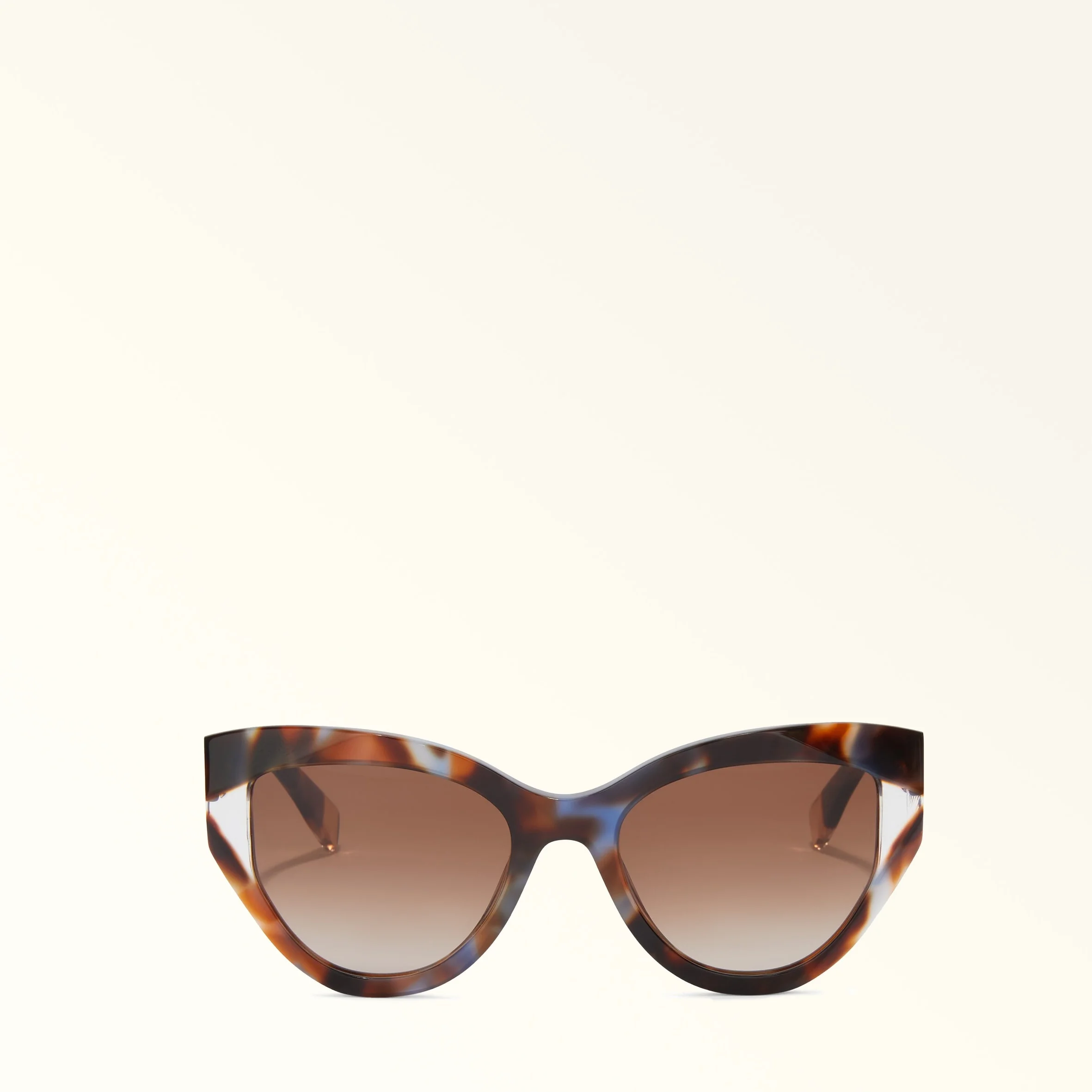 Sporting a slight cat-eye shape, the Furla SFU886 Sunglasses feature a colour-block acetate frame front. The frame accentuates the construction of the geometric sides. The bold temples are embellished with the brand's iconic lettering. - Metal Furla Arch logo plaque on the temple tips - Gradient lenses - Suitable for prescription lenses Details Material: Acetate Colorblock Frame Material: Acetate Lense Color: Gradient Brown Lense Material: Polyester Cr39 Sunglasses Shape: Cat Eye UV protection: cat. 3 Product Code: WD00131BX189244013838S External Composition: 90% Acetate 10% Metal Plating: Basic Model Temple: 5.51 in Bridge: 0.79 in Calibre: 2.13 in