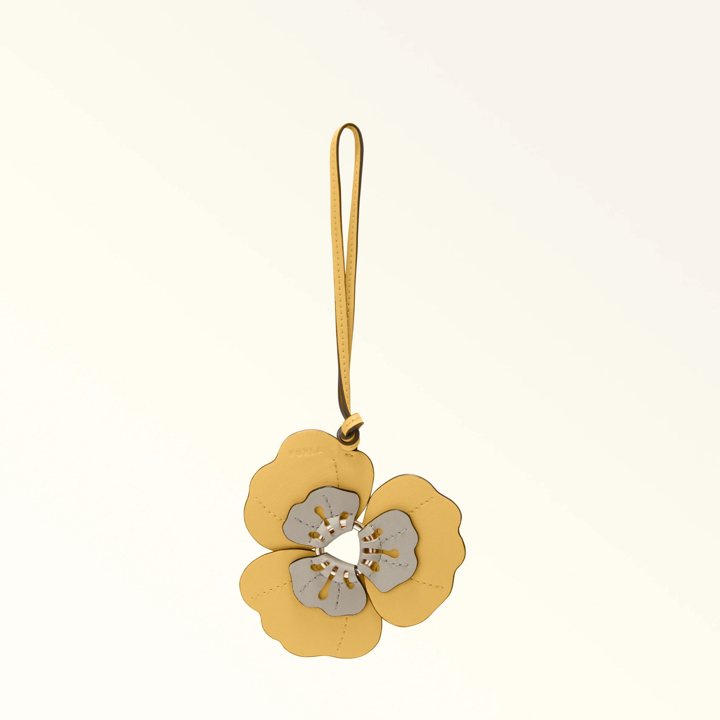 This flower-shaped Furla Allegra charm is made of printed leather and decorated with contrasting colour-block details. A springtime accessory for embellishing your bag or corralling your keys, it adds a fun touch to any look. - Thin matching leather strap - Furla logo engraved on the central metal ring Details Exterior Details: Furla Logo Engraved On The Metal Material: Colourblock Sydney Calf Leather Product Code: WK00271BX317544013608S External Composition: 100% Leather Plating: Basic Model
