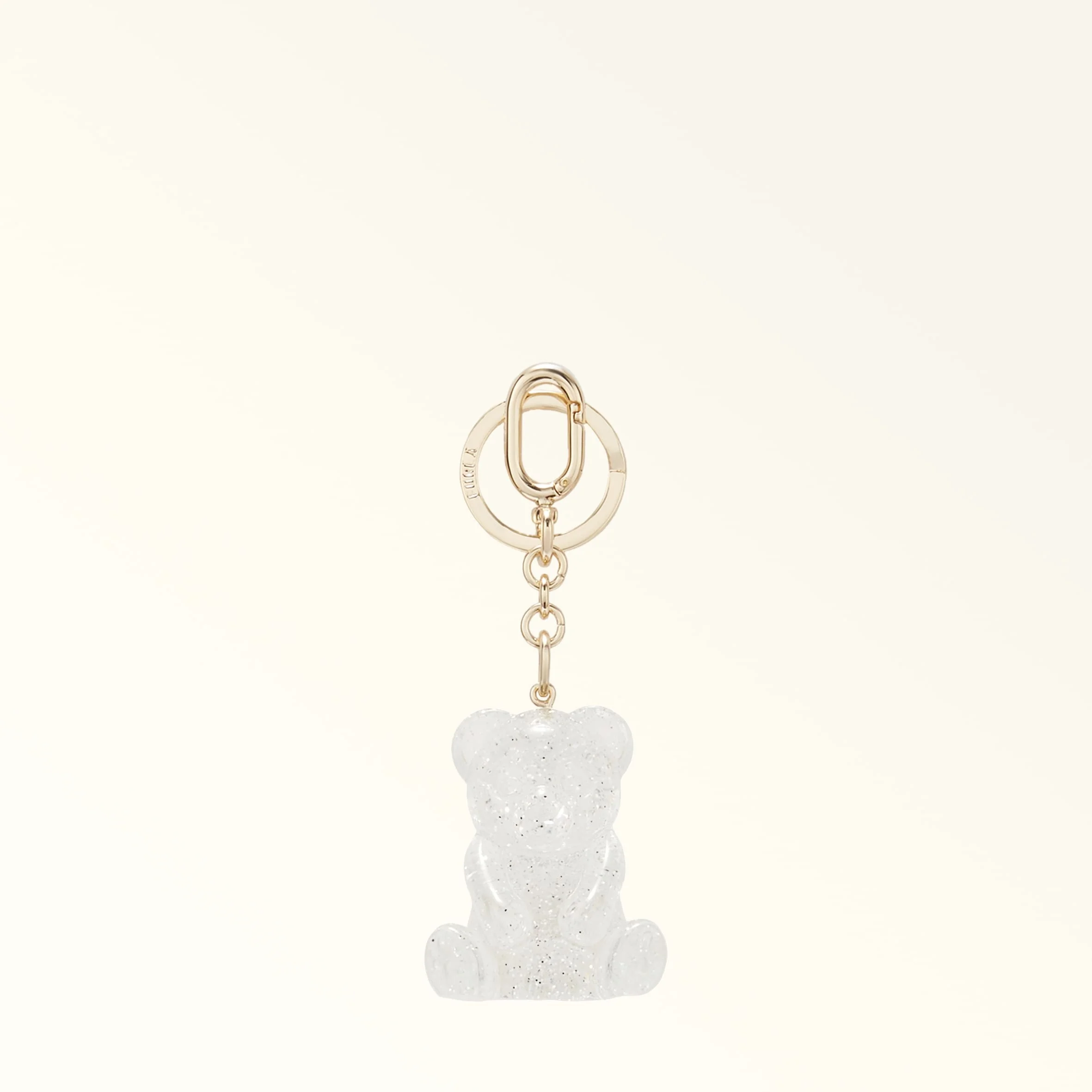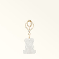 A keyring and lucky charm in one, this Furla Allegra accessory features the brand's iconic bear in a clear plexiglass embellished with shimmering glitter. Designed to add a radiant detail to your look. - Snap hook and ring with engraved Furla logo Details Exterior Details: Furla Logo Engraved On The Metal Material: Glitter Plexiglass Hardware: Snap Hook/Brisee Ring Product Code: WR00846BX35671007Y3000 External Composition: 90% Resin 9% Metal 1% Metal Plating: Gold Dimensions in INCH 1,57 x 4,92 x 1,38 (w x h x d)