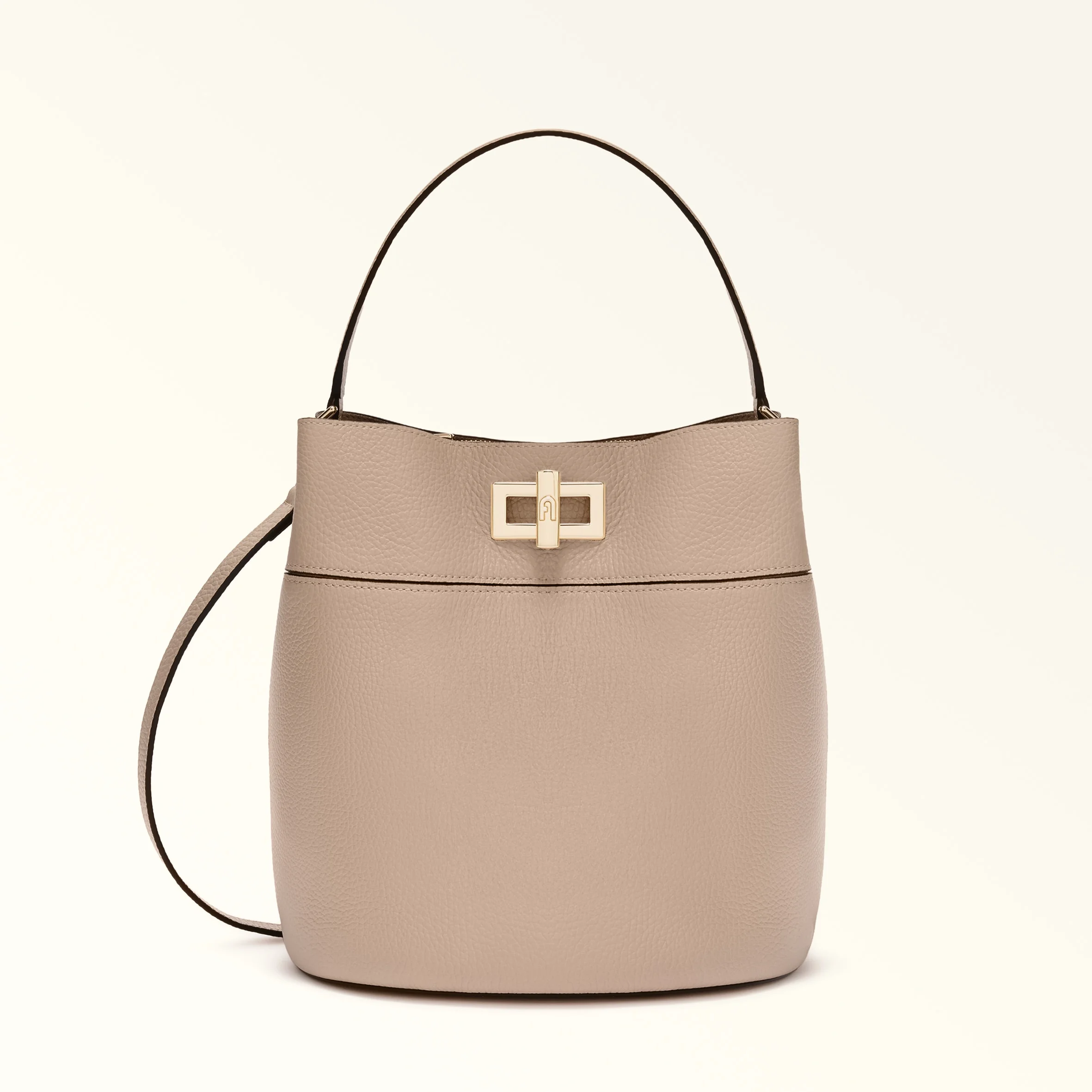The subtle grained texture on its calfskin leather gives the compact but spacious Furla Amelia bucket bag an easy elegance. Featuring an adjustable and removable strap, it can be carried in a variety of ways, and its two inner compartments keep your essentials safe and to hand. - Front compartment with twist closure - Compartment with magnetic closure on the back - D-ring for charms and keys - Punched Furla logo Details Exterior Details: Furla Logo/Single Handle Material: Grained Calf Leather Strap information: Removable/adjustable leather strap Strap Length Max: 46.06 in Strap Length Min: 41.73 in Product Code: WB01953HSF000100793300 Plating: Gold Dimensions in INCH 8,86 x 9,65 x 7,28 (w x h x d)