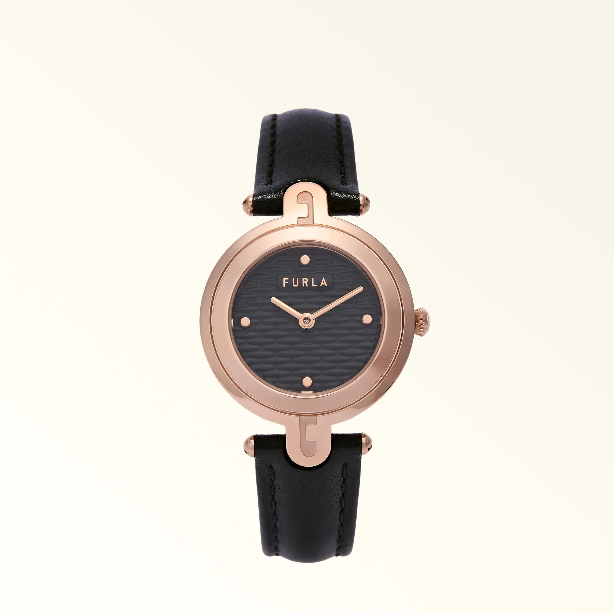 The sophisticated Furla Arch-Bar watch features a round case and a calfskin leather strap, coordinating with the colour of its quilted-effect dial. Wear it alone or pair it with matching accessories for a distinctive look. - 28 mm case - Furla Arch logo on the twelfth hour marker To download the warranty and instruction manual for your watch, please click here Details Material: Leather + Metal Watch case Material: Metal Watch case Shape: Round Water resistance: 5 ATM Product Code: WW00108LM00001008O6000 Plating: Rose Gold Weight: 0.26 kg