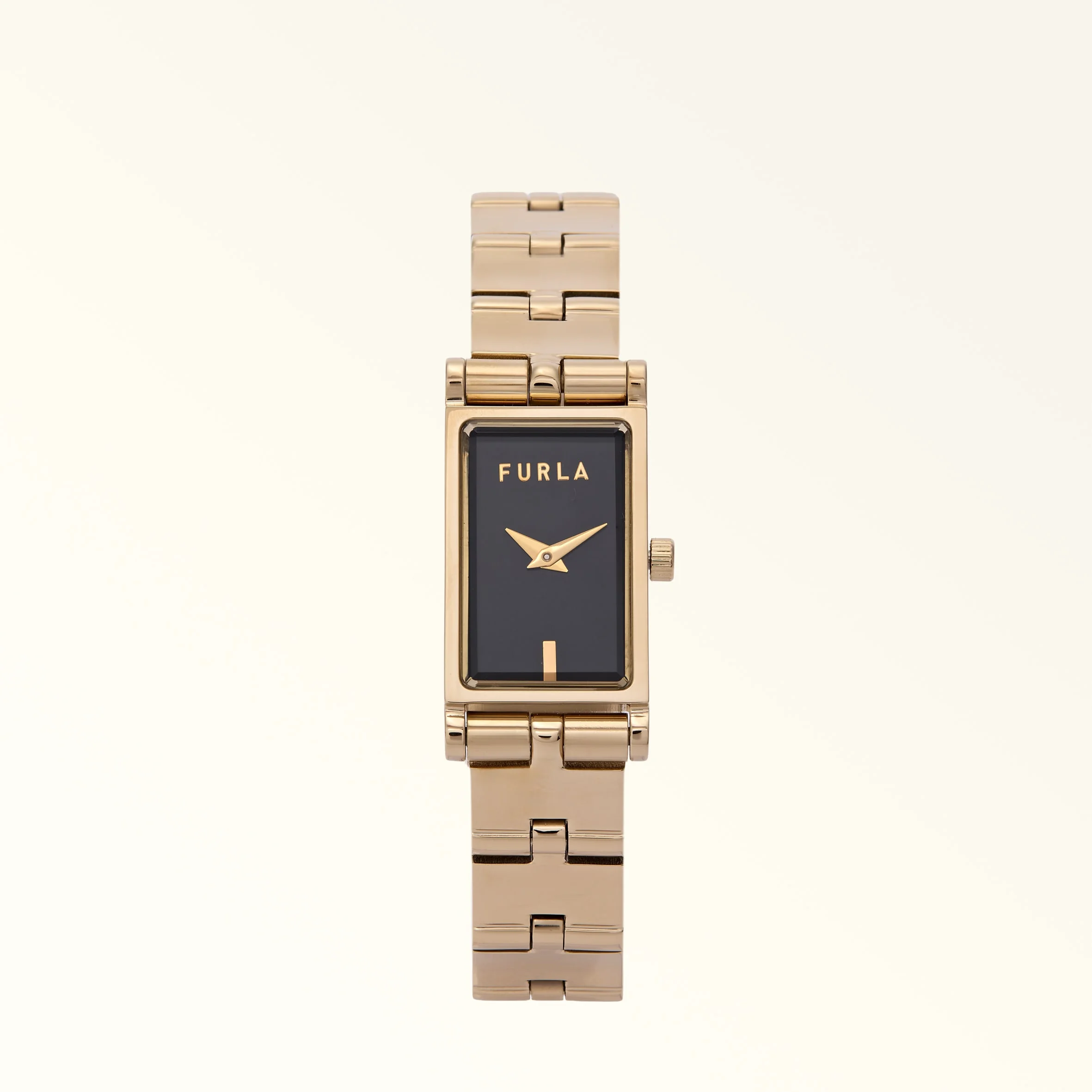 Our Furla Baguette New Rectangular watch draws on vintage and contemporary sources of inspiration, featuring a metal link bracelet and a matte baguette-cut dial. Its design ticks seamlessly from day to night. - 24 mm case - Furla lettering on the twelfth hour marker To download the warranty and instruction manual for your watch, please click here Details Material: Metal Watch case Material: Metal Watch case Shape: Rectangular Water resistance: 3 ATM Product Code: WW00110MT000010070118S Plating: Gold Weight: 0.29 kg Dimensions in INCH 0,51 x 0,94 (w x h)