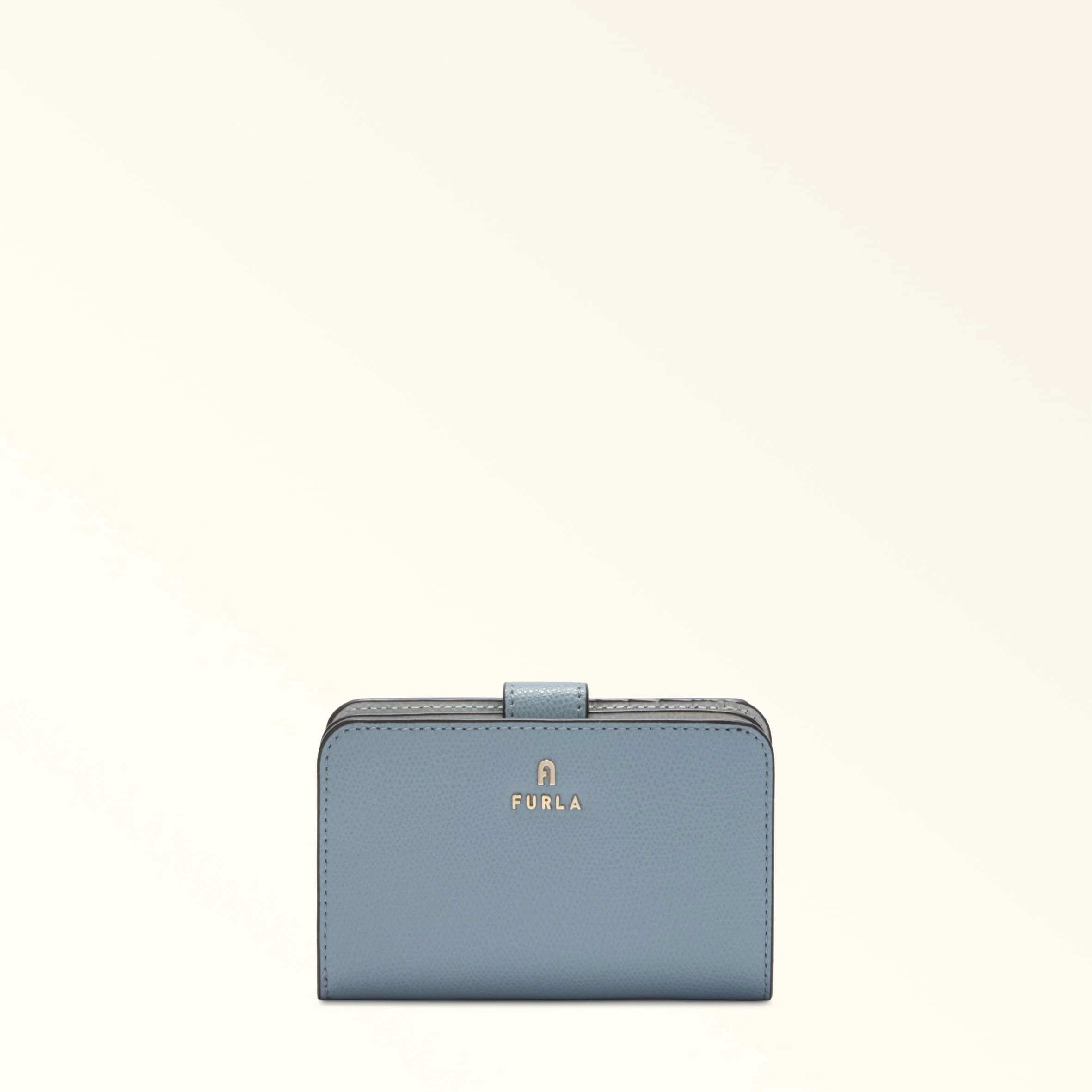 The minimalist design of this Furla Camelia compact wallet makes it the ideal choice to keep in every bag. The inside is designed especially to hold banknotes, cards and ID, and it is crafted from smooth leather, featuring rounded corners and elegant lines. - Ten inner credit card and slots - Inner compartment for banknotes - Four inner side pockets - Inner zipped coin pocket - Flap and press-stud closure - Mini Furla and Arch logo punched on the front Details Interior Details: 10 Cc Slots/4 Lateral Pockets/1 Large Compartment/Pocket With Zip For Coins Material: Textured Leather Closure: Snap Button Closure Hardware: Arch+Furla Lettering / Metal Zip Puller Product Code: WP00314ARE00010074352S Internal Composition: 100% Viscose External Composition: 100% Leather Plating: Gold Dimensions in INCH 5,51 x 3,54 x 1,2 (w x h x d)