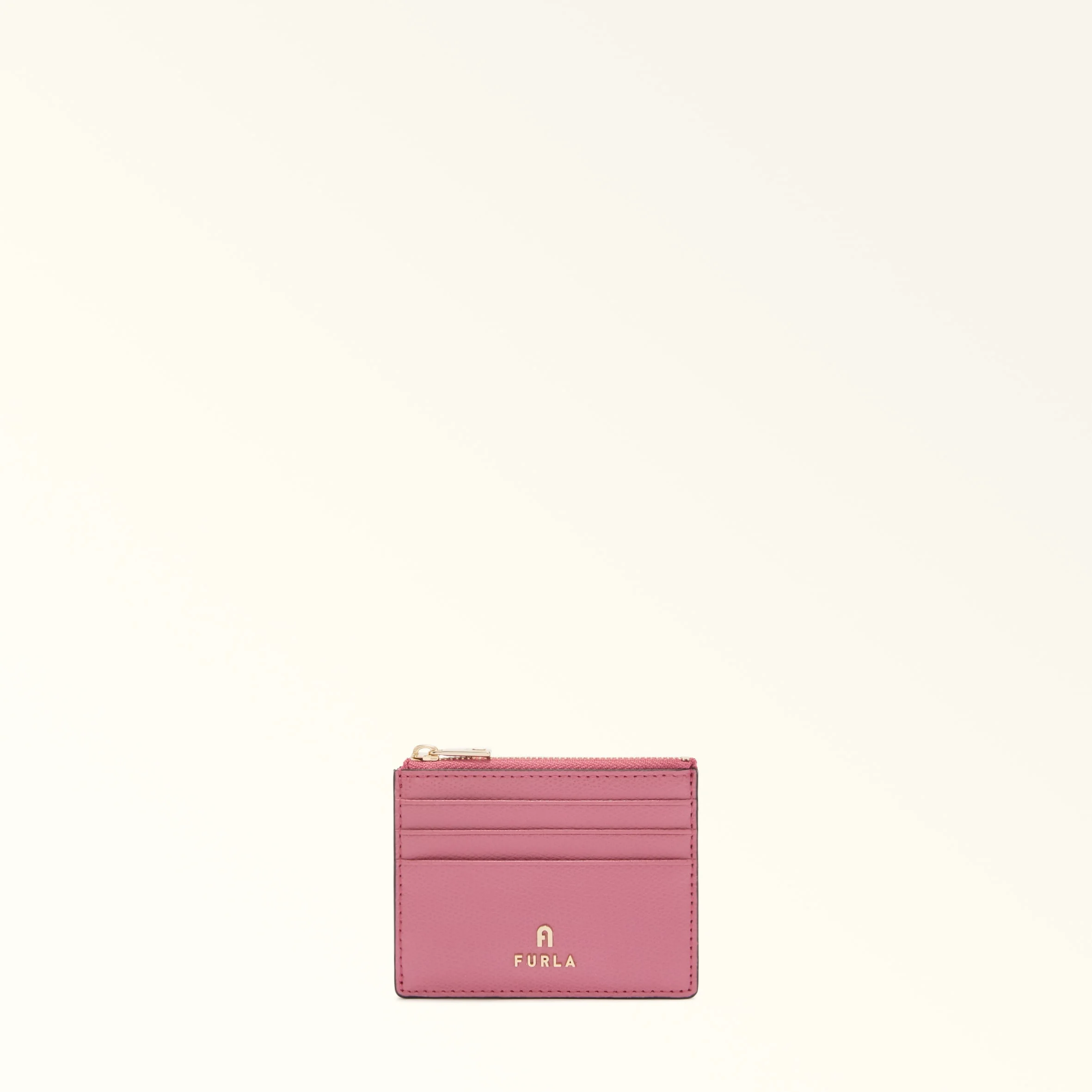 Keep your cards within easy reach with this stylish Furla Camelia card holder in printed textured leather. This compact design is ideal for keeping in any bag, and can also be used to hold cash, coins and receipts in the main compartment. - Three credit card slots on the front and back - Mini Furla and Arch logo punched on the front Details Exterior Details: 3 Cc Slots On Front Panel/3 Cc Slots On Back Panel Material: Textured Leather Closure: Zipper Hardware: Arch+Furla Lettering / Metal Zip Puller Product Code: WP00388ARE00010074147S Internal Composition: 100% Viscose External Composition: 100% Leather Plating: Gold Dimensions in INCH 4,13 x 3,35 x 0,59 (w x h x d)