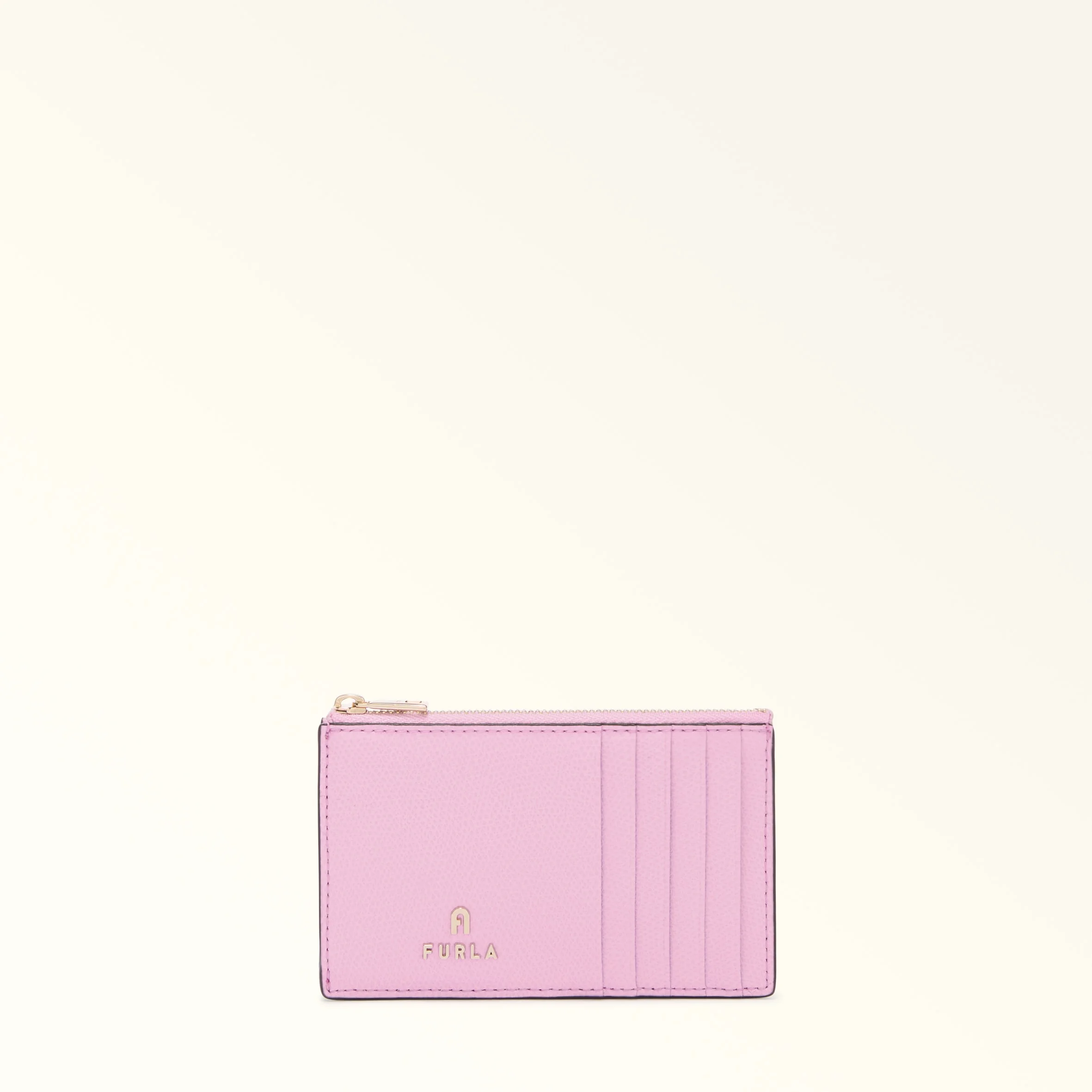 Crafted from luxurious printed leather, this Furla Camelia card holder is small and slim enough to slot into even the smallest bag. - Five credit card slots on the front and back - Zip closure - Mini Furla and Arch logo punched on the front Details Exterior Details: 5 Cc Slots On Front Panel/5 Cc Slots On The Back Panel/1 Central Zipped Pocket Material: Textured Leather Closure: Zipper Hardware: Arch+Furla Lettering / Metal Zip Puller Product Code: WP00310ARE00010074148S Internal Composition: 100% Viscose External Composition: 100% Leather Plating: Gold Weight: 0.16 kg Dimensions in INCH 5,12 x 3,15 (w x h)