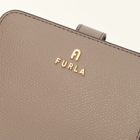Styled in luxurious printed leather with a grained finish, this Furla Camelia wallet is a compact design, perfect for keeping handy in your bag. Inside it features various pockets and compartments to keep your cash and cards well organised. - Six inner credit card slots - Four inner side pockets - Inner compartment for banknotes - Inner zipped coin pocket - Press-stud closure - Furla and Arch logos punched on the front Details Interior Details: 6 Cc Slots/4 Lateral Pockets/1 Large Compartment/1 Zipped Pocket For Coins Material: Textured Leather Closure: Snap Button Closure Hardware: Arch+Furla Lettering / Metal Zip Puller Product Code: WP00315ARE00010073787S Internal Composition: 100% Viscose External Composition: 100% Leather Plating: Gold Weight: 0.24 kg Dimensions in INCH 4,72 x 3,35 x 0,98 (w x h x d)