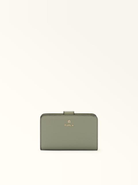 The minimalist design of this Furla Camelia compact wallet makes it the ideal choice to keep in every bag. The inside is designed especially to hold banknotes, cards and ID, and it is crafted from soft grained leather, featuring rounded corners and elegant lines. - Ten inner credit card slots - Inner compartment for banknotes - Four inner side pockets - Inner zipped coin pocket - Press-stud closure - Mini Furla and Arch logo punched on the front Details Interior Details: 10 Cc Slots/4 Lateral Pockets/1 Large Compartment/Pocket With Zip For Coins Material: Grained Calf Leather Closure: Snap Button Closure Hardware: Arch+Furla Lettering / Metal Zip Puller Product Code: WP00314HSF000100755000 Internal Composition: 100% Viscose External Composition: 100% Leather Plating: Gold Weight: 0.26 kg Dimensions in INCH 5,51 x 3,54 x 1,2 (w x h x d)