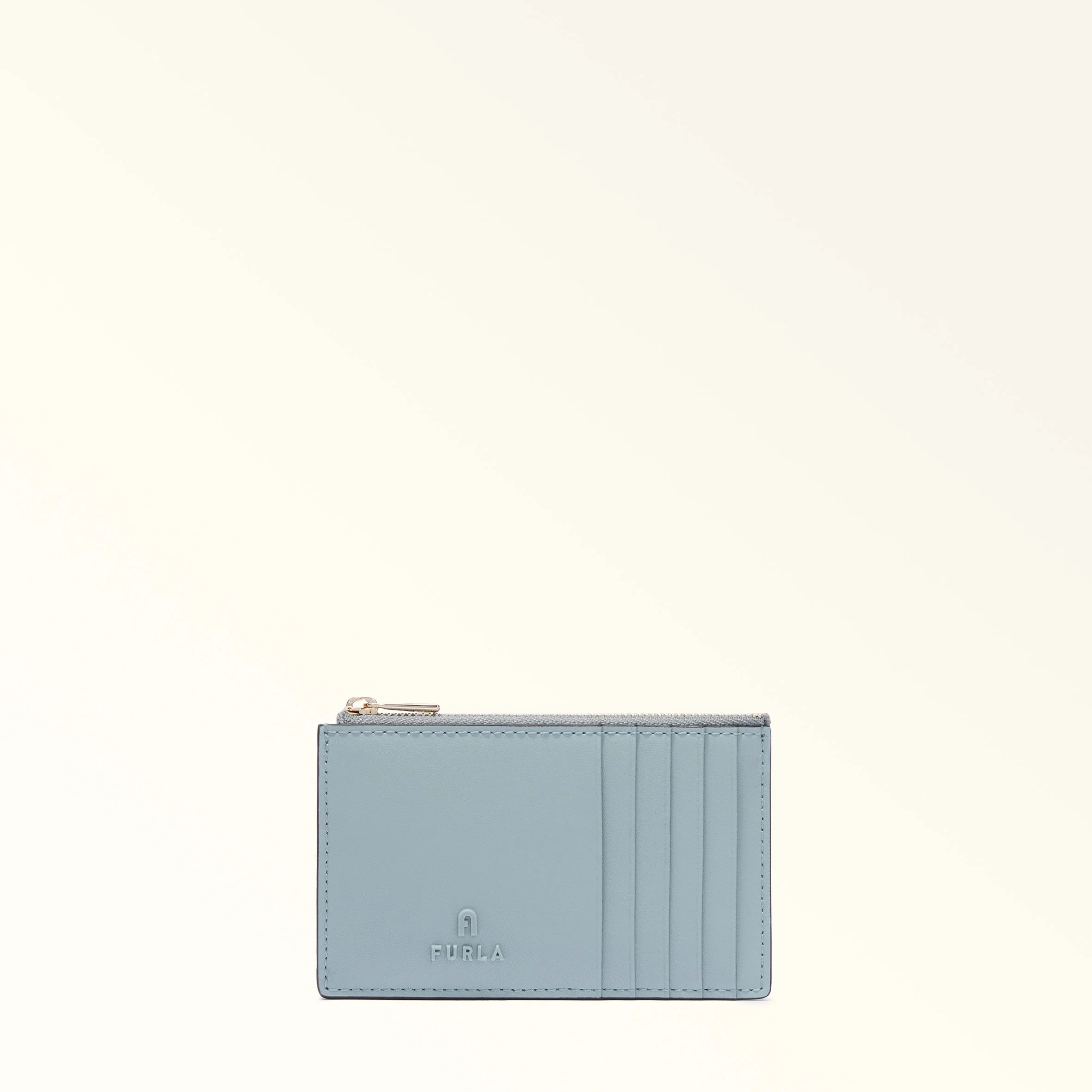 The Furla Camelia card holder is made of grained leather with a Bear Hug motif. Its small, slim silhouette slips conveniently into any bag. - Five credit card compartments on the front and back - Central inside pocket with zip closure - Zipped closure - Mini Furla and Arch logos punched on the front Details Exterior Details: 5 Cc Slots On Front Panel/5 Cc Slots On The Back Panel/1 Central Zipped Pocket Material: Sidney Calf Leather With Bear Hug Print Hardware: Arch+Furla Lettering / Metal Zip Puller Product Code: WP00310BX398690014024S Internal Composition: 60% Viscose 24% Polyester 16% Polyurethane External Composition: 100% Leather Plating: Matching+Light Gold Dimensions in INCH 5,12 x 3,15 (w x h)