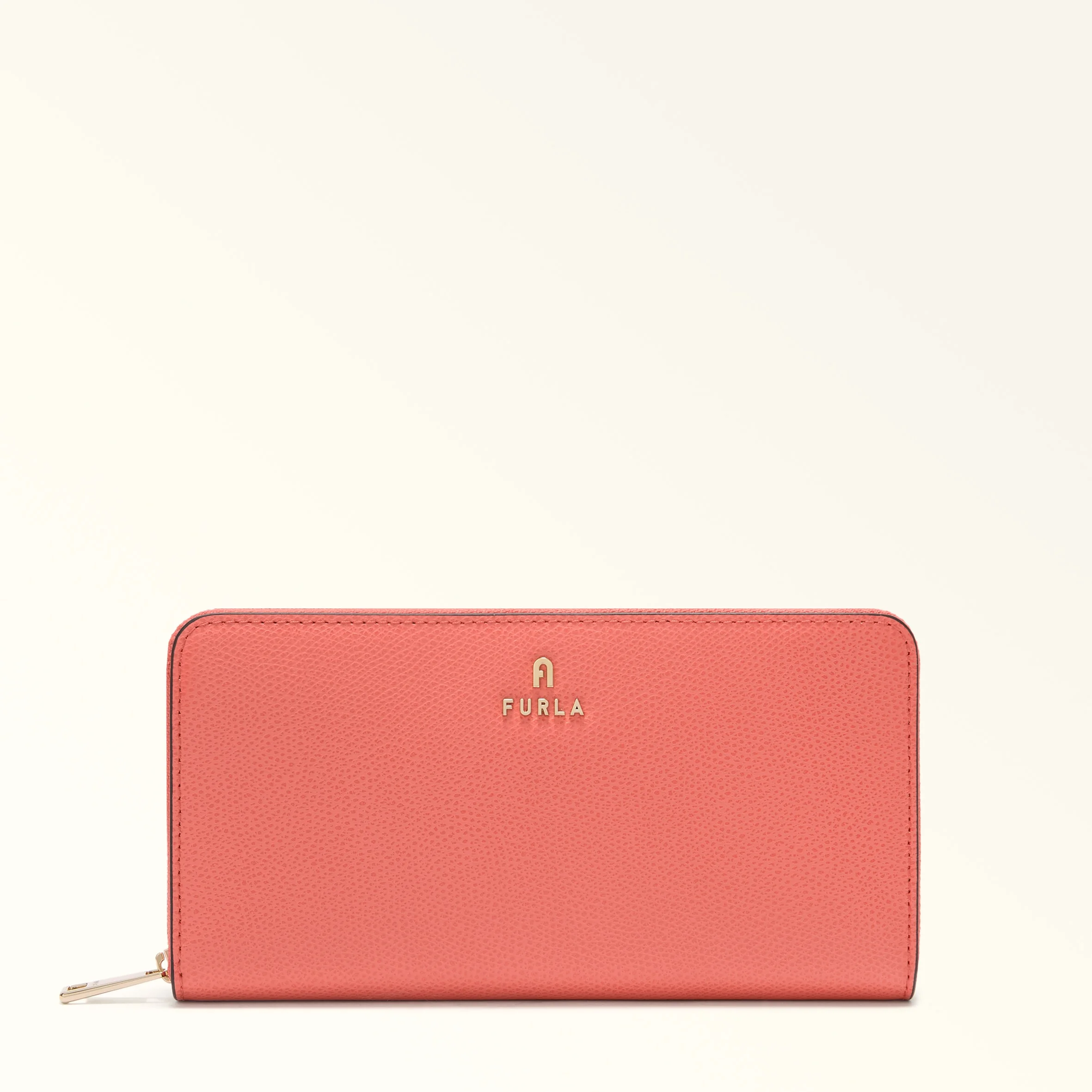 Keep your cards and cash perfectly organised with this Furla Camelia zip-around continental wallet, or even use it as a clutch. Crafted in luxurious printed leather with a light textured finish, its size and elegant design is certain to grab attention. - Twelve inner credit card and ID slots - Two inner compartment for banknotes - Three inner side pockets - Open inside central pocket - Inner zipped coin pocket - Mini Furla and Arch logo punched on the front Details Interior Details: 12 Cc Slots/2 Lateral Banknotes Pockets/1 Central Open Pocket/1 Zipped Pocket/3 Compartments Material: Textured Leather Closure: Zipper Hardware: Arch+Furla Lettering / Metal Zip Puller Product Code: WP00322ARE00010074506S Internal Composition: 100% Viscose External Composition: 100% Leather Plating: Gold Weight: 0.36 kg Dimensions in INCH 7,68 x 3,94 x 0,75 (w x h x d)