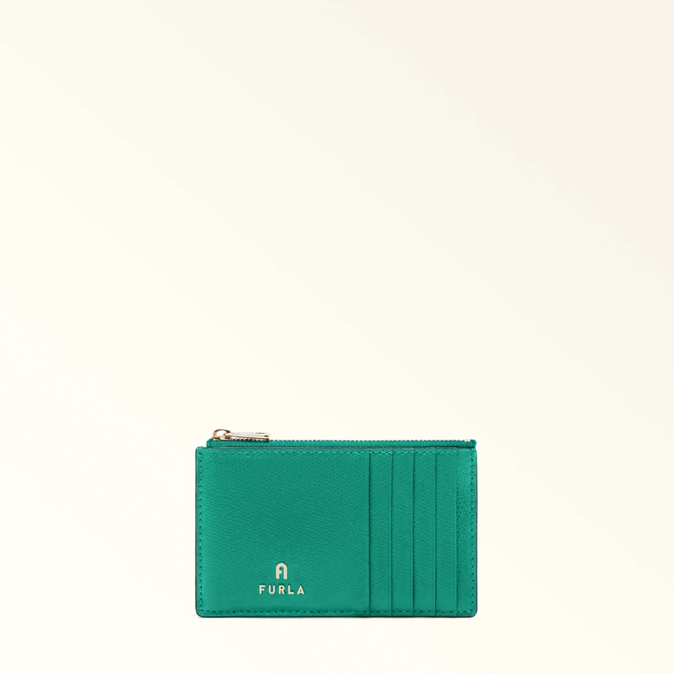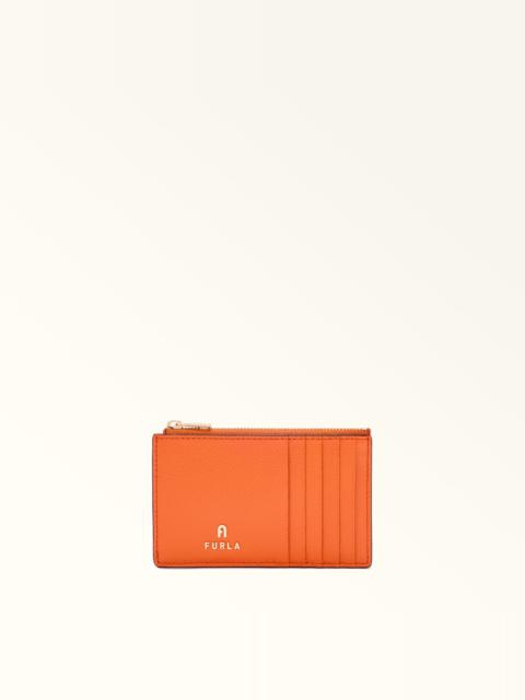 Crafted from luxurious printed leather, this Furla Camelia card holder is small and slim enough to slot into even the smallest bag. - Five credit card slots on the front and back - Zip closure - Mini Furla and Arch logo punched on the front Details Exterior Details: 5 Cc Slots On Front Panel/5 Cc Slots On The Back Panel/1 Central Zipped Pocket Material: Textured Leather Closure: Zipper Hardware: Arch+Furla Lettering / Metal Zip Puller Product Code: WP00310ARE0001007JD000 Internal Composition: 100% Viscose External Composition: 100% Leather Plating: Gold Dimensions in INCH 5,12 x 3,15 (w x h)