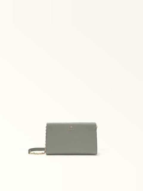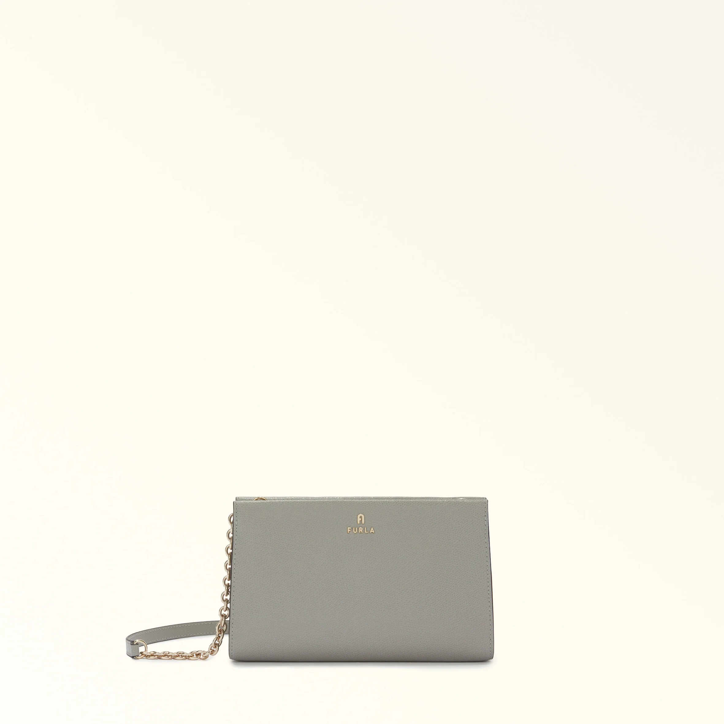 The sleek and understated design of this Furla Camelia mini crossbody bag features geometric lines, a rectangular shape and a rigid handle. Crafted in grained leather, this elegant and versatile piece can be carried as a clutch or worn crossbody, and is the ideal choice for stylishly holding all your essentials. - Twelve inner credit card slots - Chain shoulder strap with leather sections - Zip closure - Furla and Arch logo punched on the front Details Interior Details: 12 Cc Slots Material: Textured Leather Strap information: Fixed/Non Adjustable Chain Strap With Leather Parts Closure: Zipper Hardware: Arch Furla Lettering Metal Zip Puller Snap Button Product Code: WE00528ARE00010073291S Internal Composition: 100% Polyester External Composition: 100% Leather Plating: Gold Weight: 0.32 kg Dimensions in INCH 7,87 x 5,12 x 0,98 (w x h x d)
