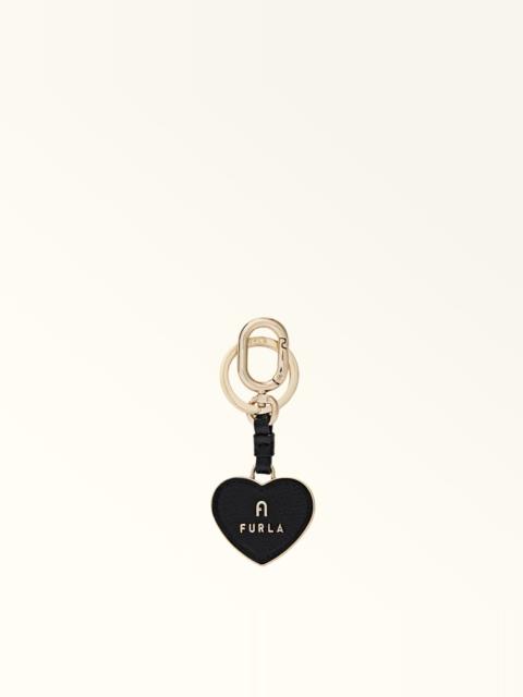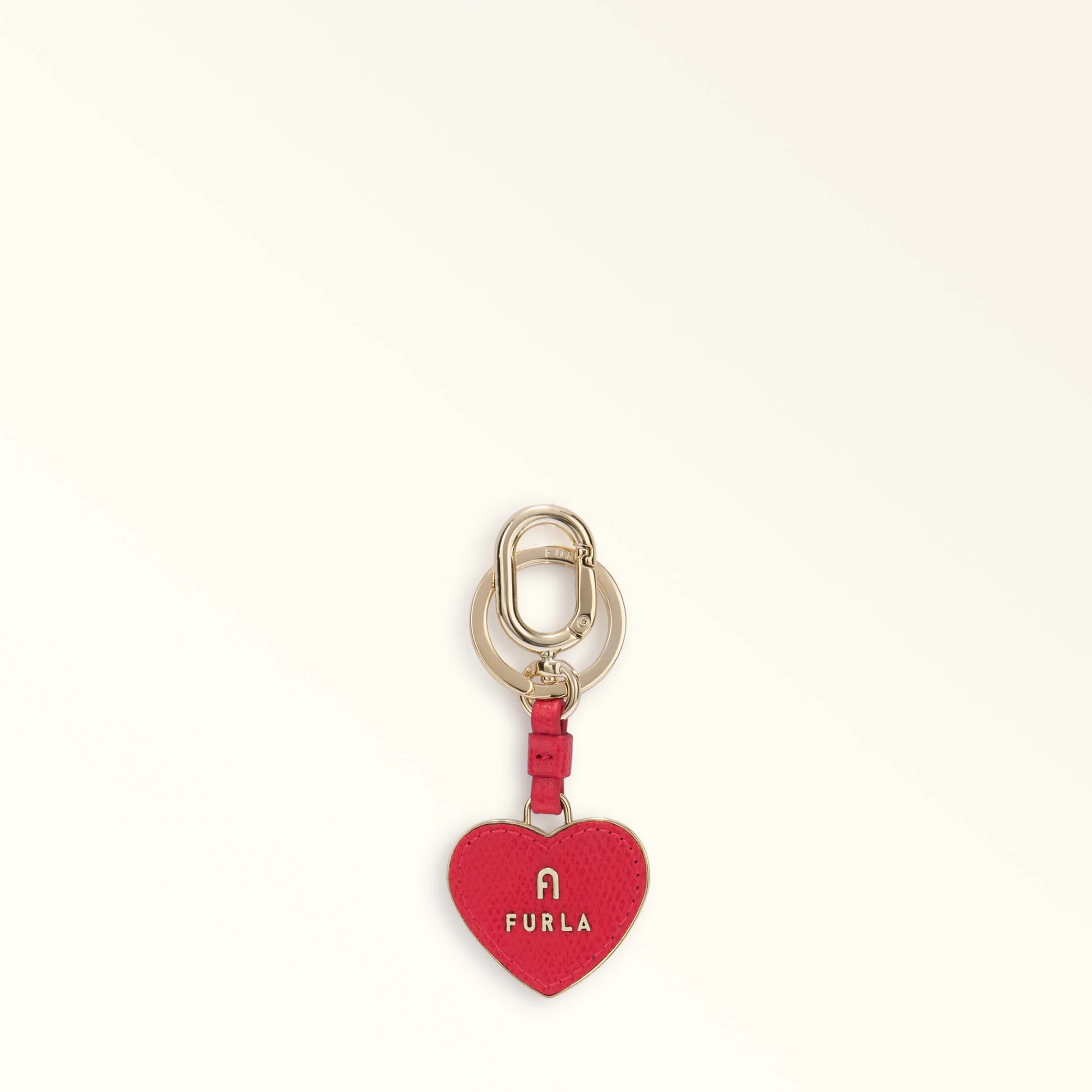 The Furla Camelia keyring comes in a romantic metal heart shape covered in exquisite textured leather, embellished with the brand's signature and the Furla Arch logo in the centre. Featuring a snap hook and ring, it can easily be attached to your bags, accessories and keys. - Engraved Furla logomania lettering on the back Details Exterior Details: Furla Logomania Pattern Engraved On The Back Material: Textured Leather + Metal Hardware: Arch+Furla Lettering/Snap Hook/Brisee Ring Product Code: WR00434AME0001007RUB00 External Composition: 54% Metal 40% Leather 5% Brass Plating: Gold Dimensions in INCH 1,57 x 1,46 x 0,16 (w x h x d)