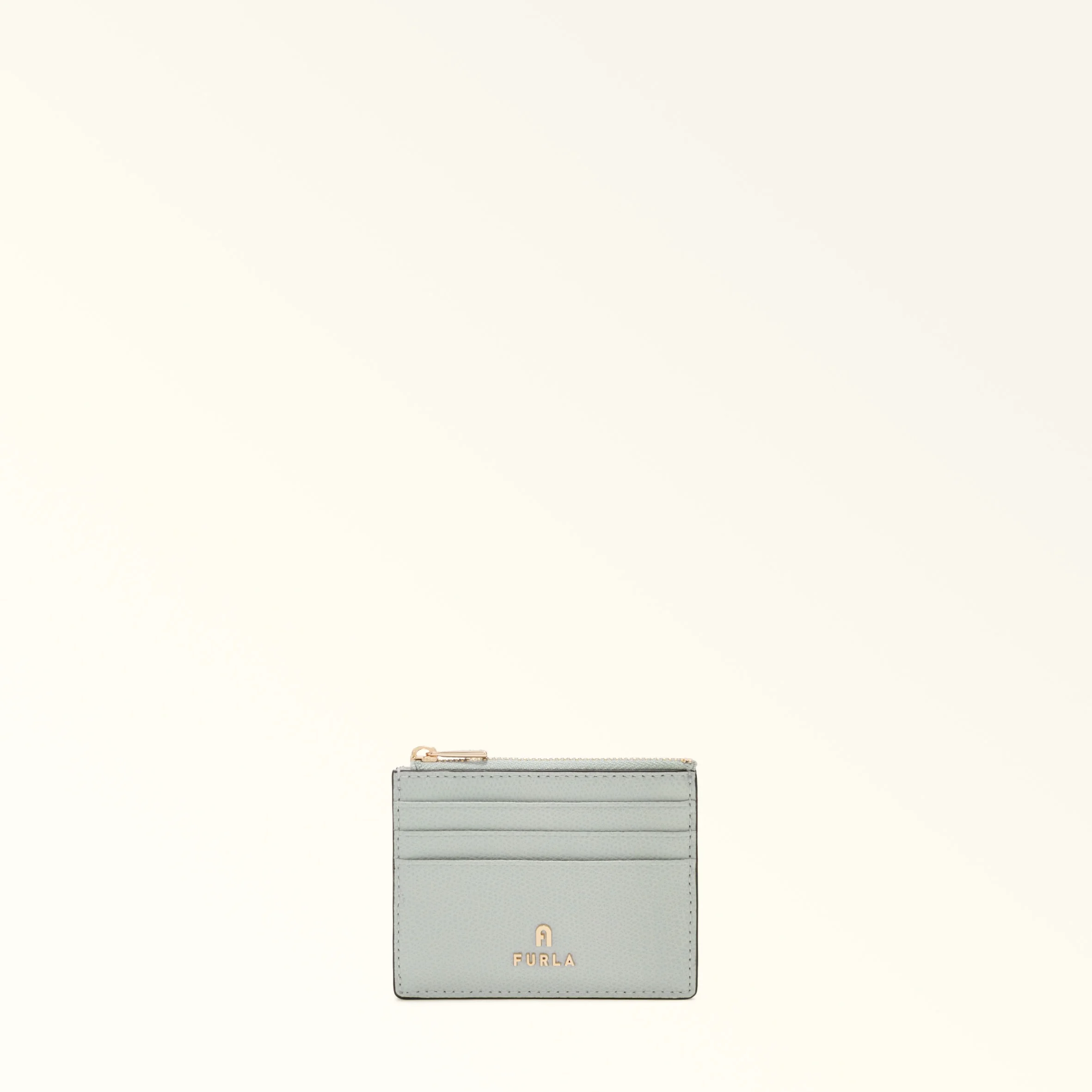 Keep your cards within easy reach with this stylish Furla Camelia card holder in printed textured leather. This compact design is ideal for keeping in any bag, and can also be used to hold cash, coins and receipts in the main compartment. - Three credit card slots on the front and back - Mini Furla and Arch logo punched on the front Details Exterior Details: 3 Cc Slots On Front Panel/3 Cc Slots On Back Panel Material: Textured Leather Closure: Zipper Hardware: Arch+Furla Lettering / Metal Zip Puller Product Code: WP00388ARE0001007CRH00 Internal Composition: 100% Viscose External Composition: 100% Leather Plating: Gold Dimensions in INCH 4,13 x 3,35 x 0,59 (w x h x d)