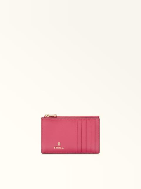 Crafted from luxurious printed leather, this Furla Camelia card holder is small and slim enough to slot into even the smallest bag. - Five credit card slots on the front and back - Zip closure - Mini Furla and Arch logo punched on the front Details Exterior Details: 5 Cc Slots On Front Panel/5 Cc Slots On The Back Panel/1 Central Zipped Pocket Material: Textured Leather Closure: Zipper Hardware: Arch+Furla Lettering / Metal Zip Puller Product Code: WP00310ARE0001007B4L00 Internal Composition: 100% Viscose External Composition: 100% Leather Plating: Gold Dimensions in INCH 5,12 x 3,15 (w x h)