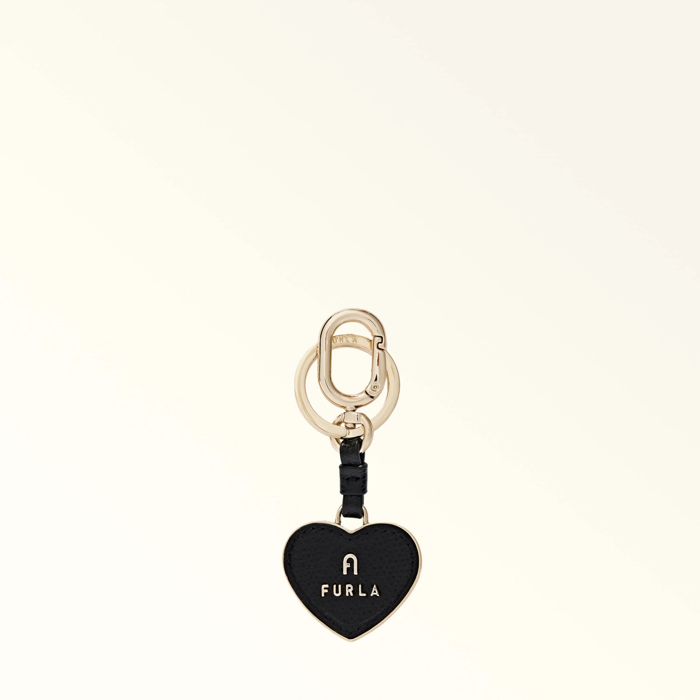 The Furla Camelia keyring comes in a romantic metal heart shape covered in exquisite textured leather, embellished with the brand's signature and the Furla Arch logo in the centre. Featuring a snap hook and ring, it can easily be attached to your bags, accessories and keys. - Engraved Furla logomania lettering on the back Details Exterior Details: Furla Logomania Pattern Engraved On The Back Material: Textured Leather + Metal Hardware: Arch+Furla Lettering/Snap Hook/Brisee Ring Product Code: WR00434AME0001007O6000 External Composition: 54% Metal 40% Leather 5% Brass Plating: Gold Dimensions in INCH 1,57 x 1,46 x 0,16 (w x h x d)