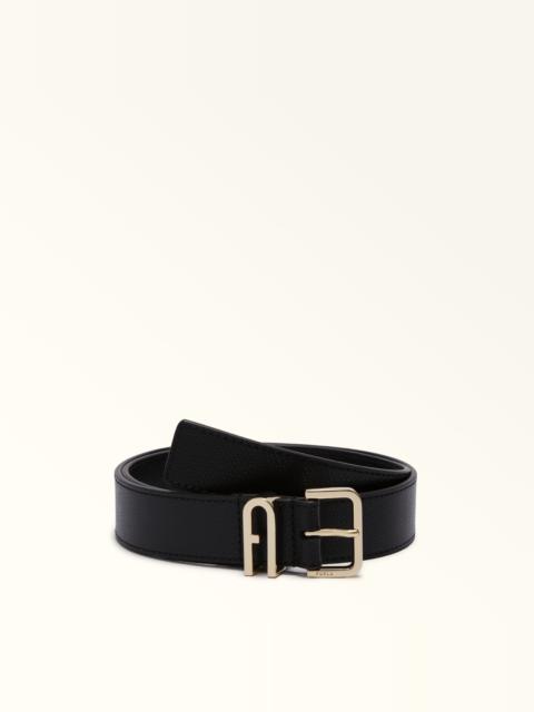 Minimalist and contemporary, the Furla Camelia belt is made of an elegant and precious leather with a printed texture. A small square buckle with a satin finish completes the accessory, which is also embellished with an eye-catching metal Furla Arch logo. - Width: 3 cm Details Exterior Details: Furla Punched Logo Material: Textured Leather Belt Type: Fixed Belt Product Code: WC00078ARE00010072572S External Composition: 90% Leather 9% Metal 1% Brass Plating: Gold
