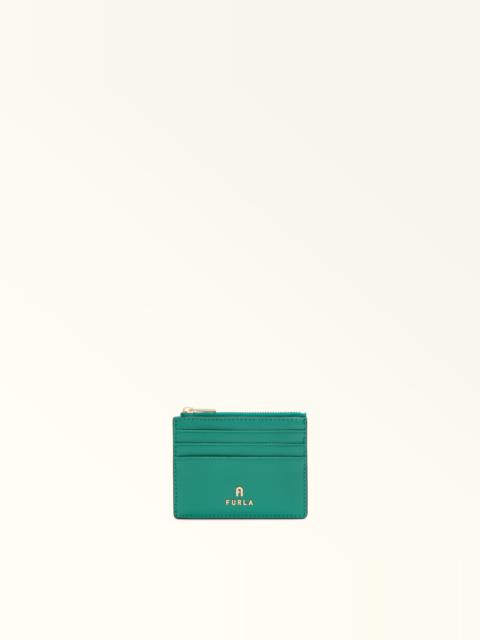 Keep your cards within easy reach with this stylish Furla Camelia card holder in printed textured leather. This compact design is ideal for keeping in any bag, and can also be used to hold cash, coins and receipts in the main compartment. - Three credit card slots on the front and back - Mini Furla and Arch logo punched on the front Details Exterior Details: 3 Cc Slots On Front Panel/3 Cc Slots On Back Panel Material: Textured Leather Closure: Zipper Hardware: Arch+Furla Lettering / Metal Zip Puller Product Code: WP00388ARE0001007RUB00 Internal Composition: 100% Viscose External Composition: 100% Leather Plating: Gold Dimensions in INCH 4,13 x 3,35 x 0,59 (w x h x d)