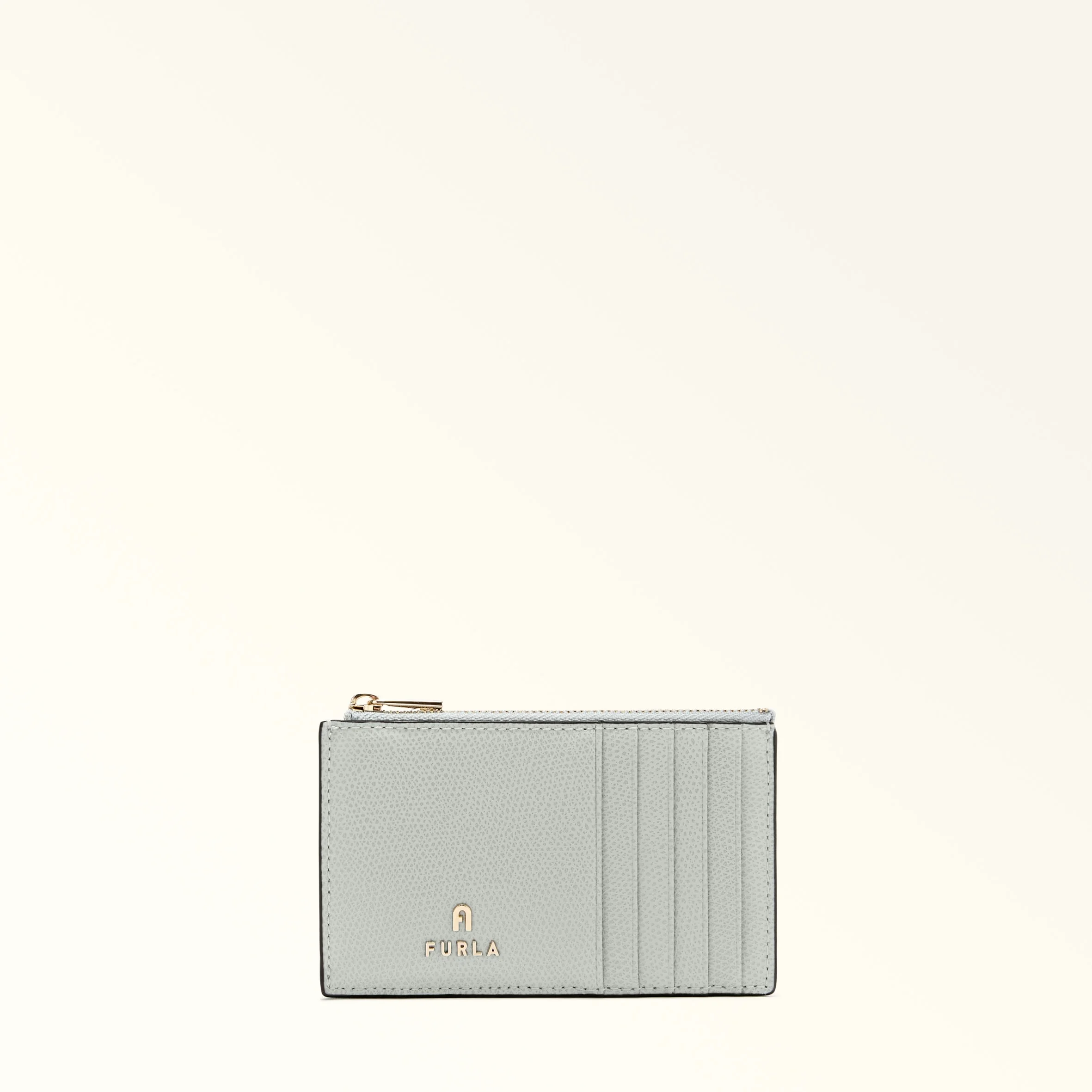 Crafted from luxurious printed leather, this Furla Camelia card holder is small and slim enough to slot into even the smallest bag. - Five credit card slots on the front and back - Zip closure - Mini Furla and Arch logo punched on the front Details Exterior Details: 5 Cc Slots On Front Panel/5 Cc Slots On The Back Panel/1 Central Zipped Pocket Material: Textured Leather Closure: Zipper Hardware: Arch+Furla Lettering / Metal Zip Puller Product Code: WP00310ARE0001007CRH00 Internal Composition: 100% Viscose External Composition: 100% Leather Plating: Gold Weight: 0.16 kg Dimensions in INCH 5,12 x 3,15 (w x h)